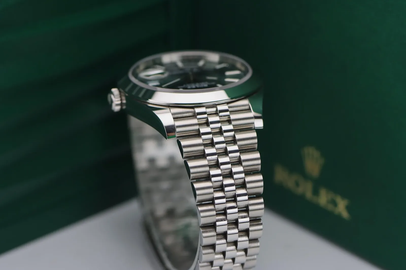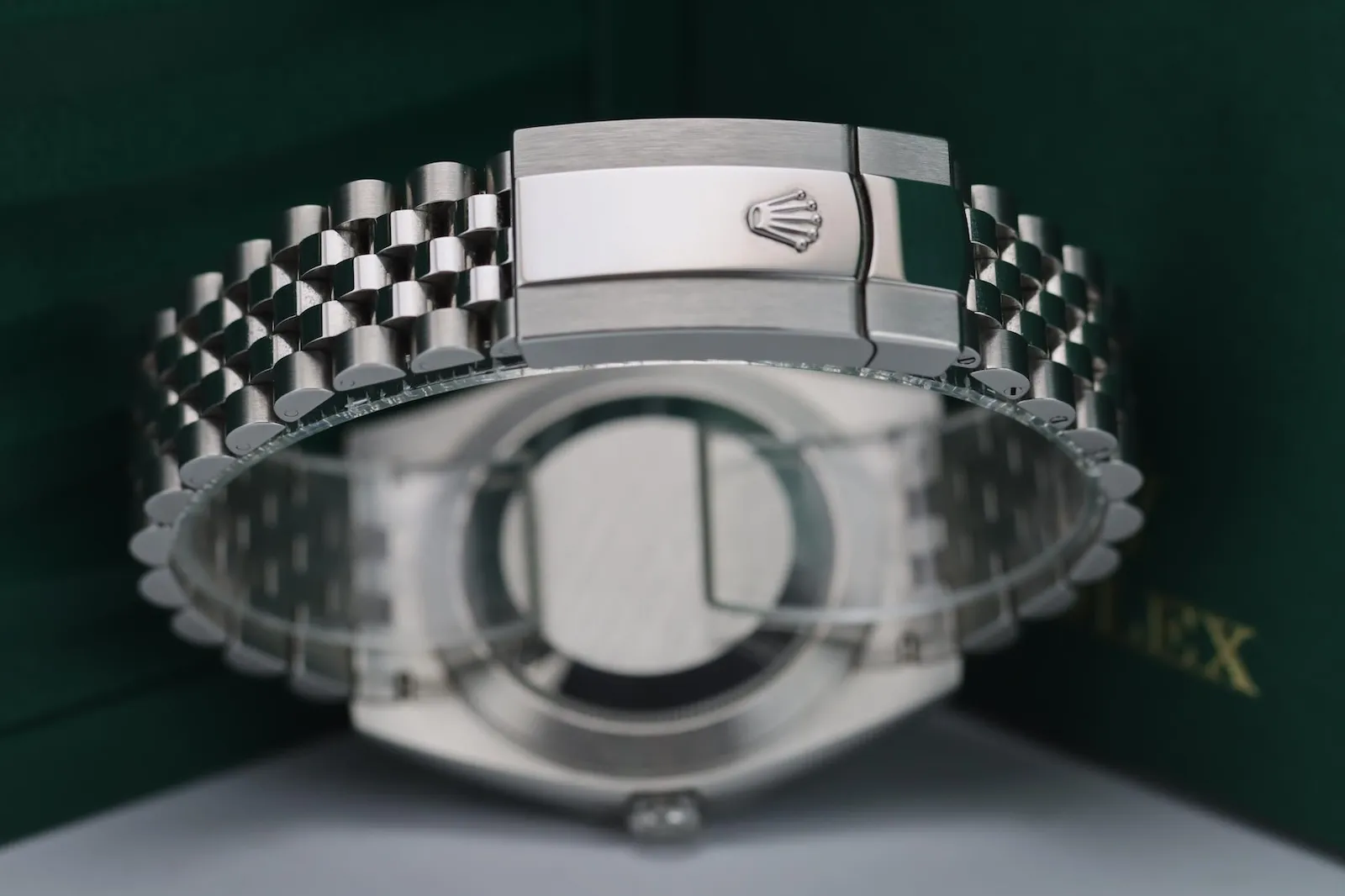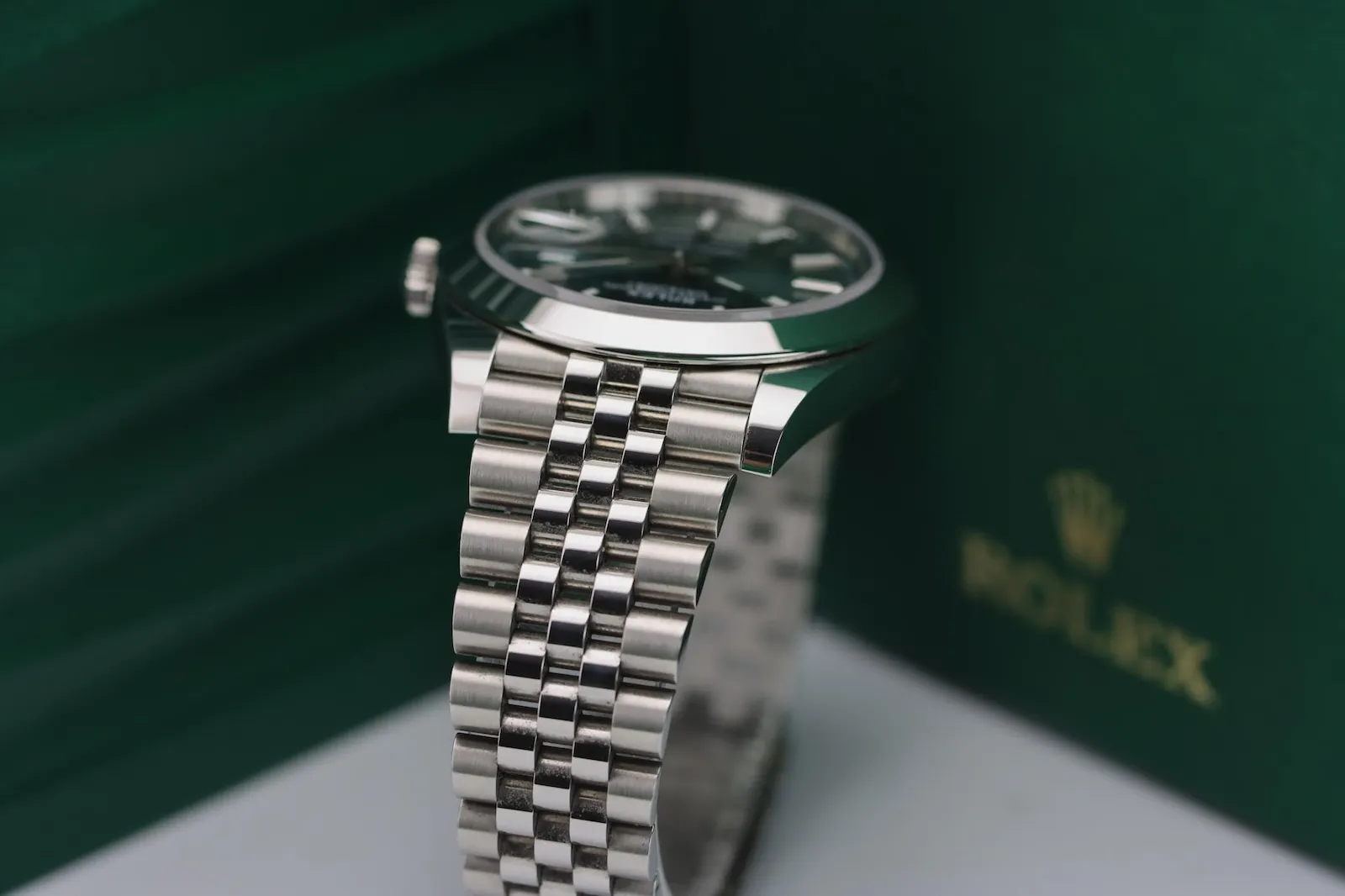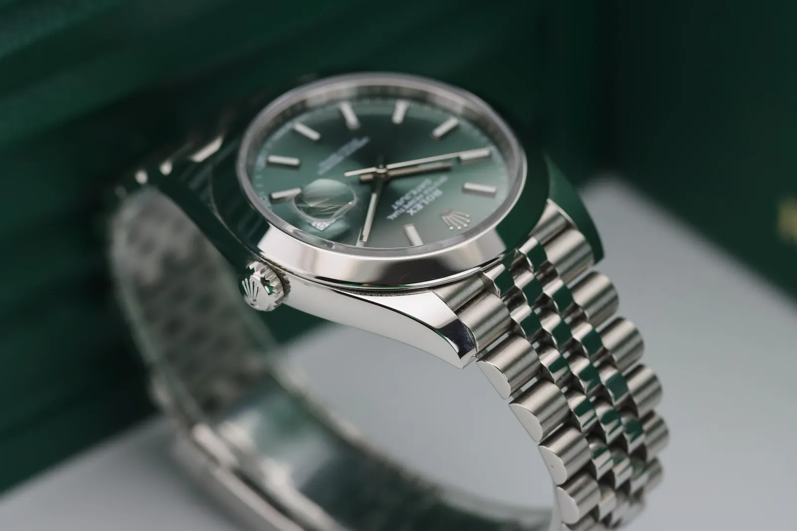 The Rolex Datejust 41 reference 126300 with the mint green dial is one of the most popular and striking modern variations in the Datejust collection. Crafted from stainless steel with a 41mm Oyster case, smooth bezel, and Jubilee bracelet, it perfectly balances everyday luxury and timeless Rolex design.