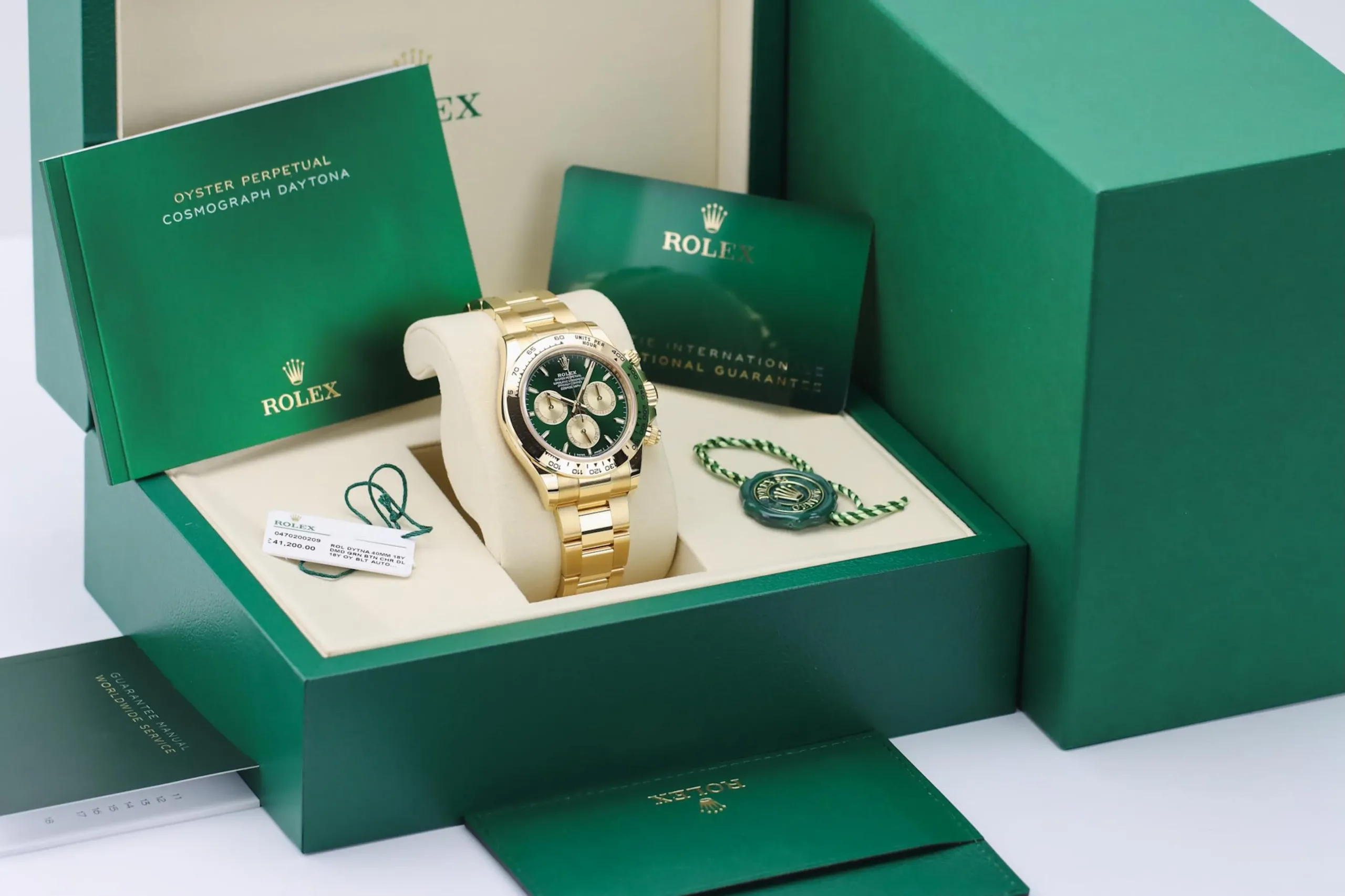 Offered as a full set with box, Rolex warranty card, booklets, and full links, this unworn piece represents an exceptional opportunity to acquire one of the most talked-about Rolex models in pristine condition. An absolute grail watch for serious collectors.