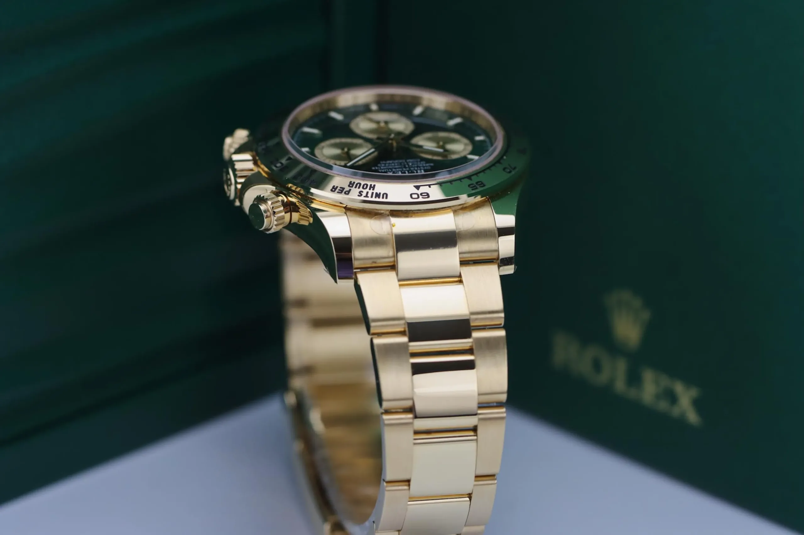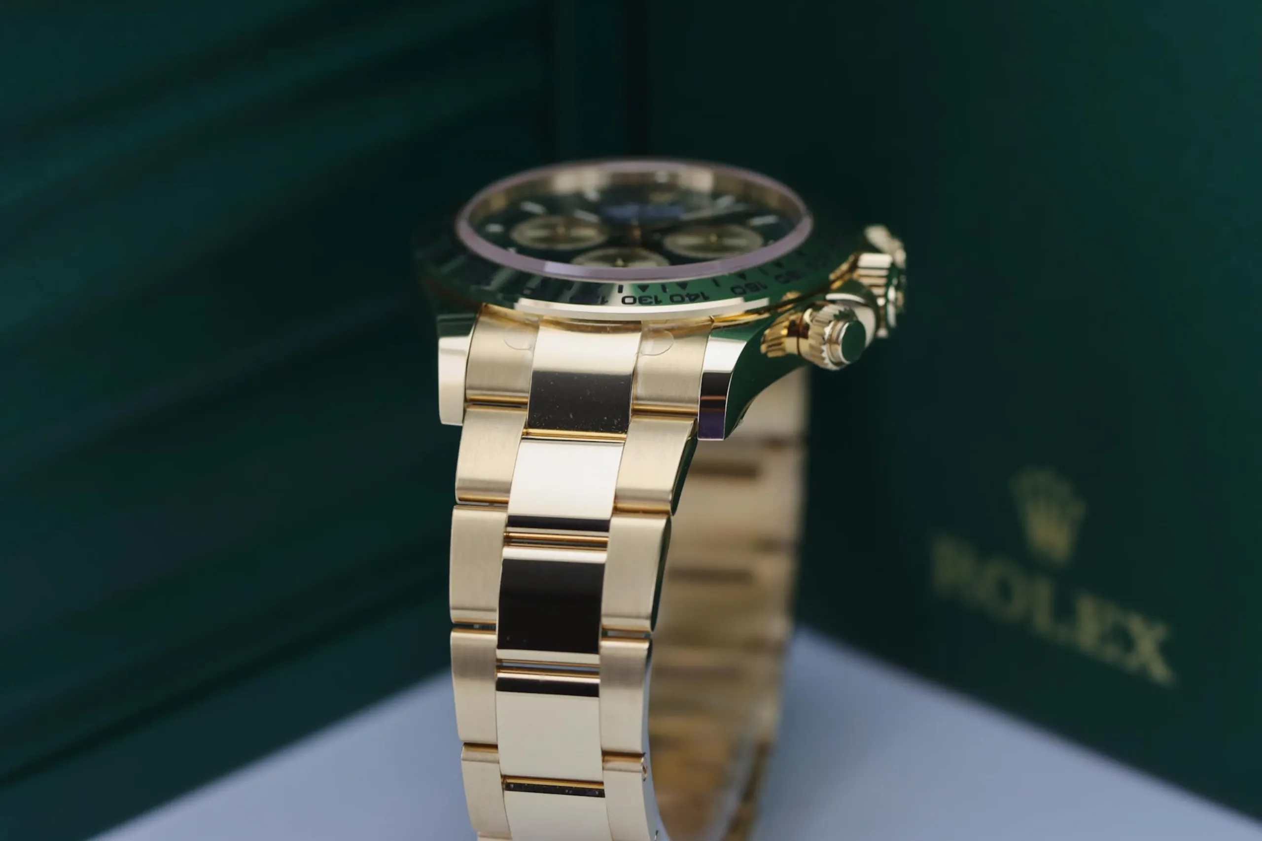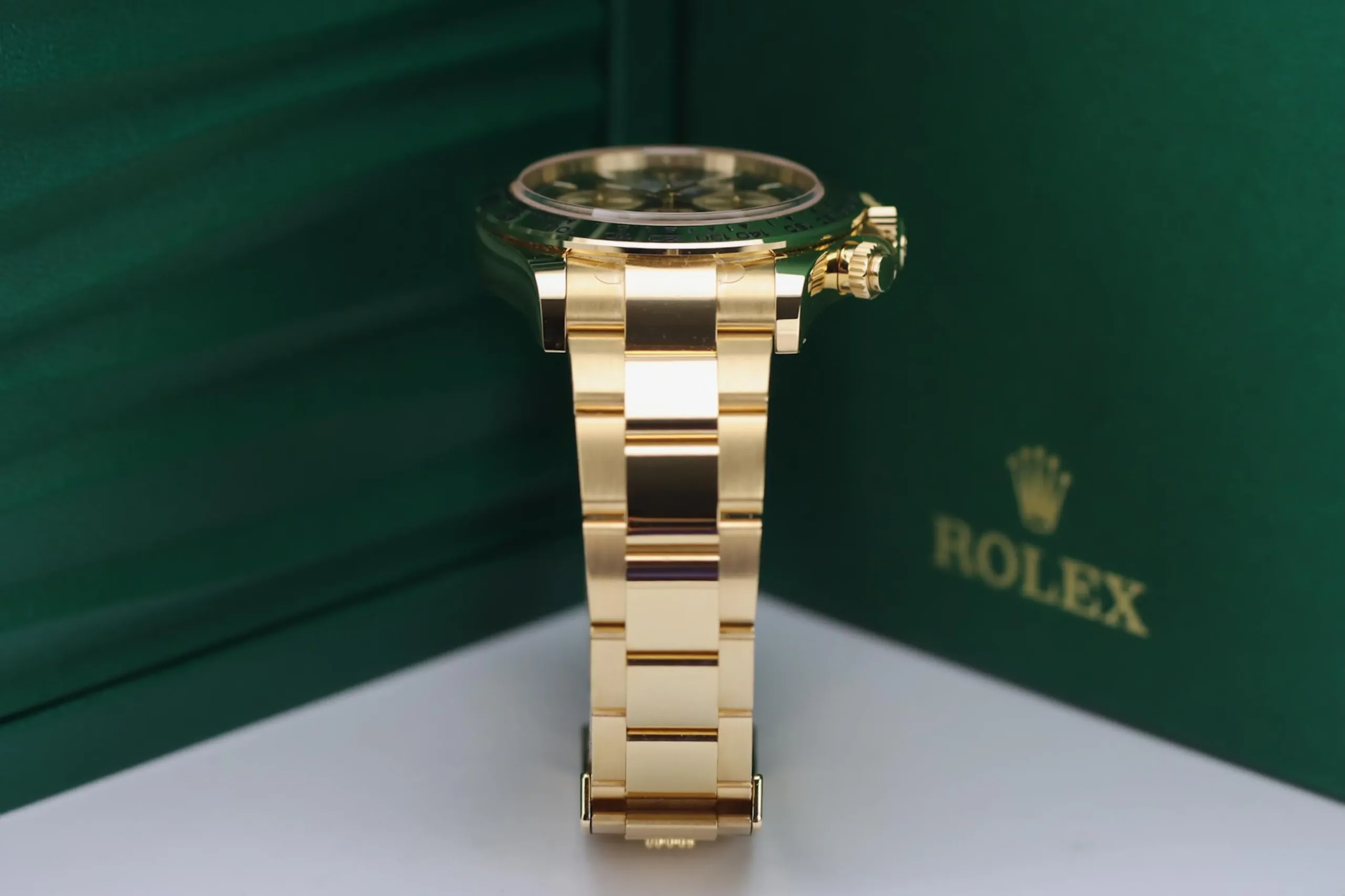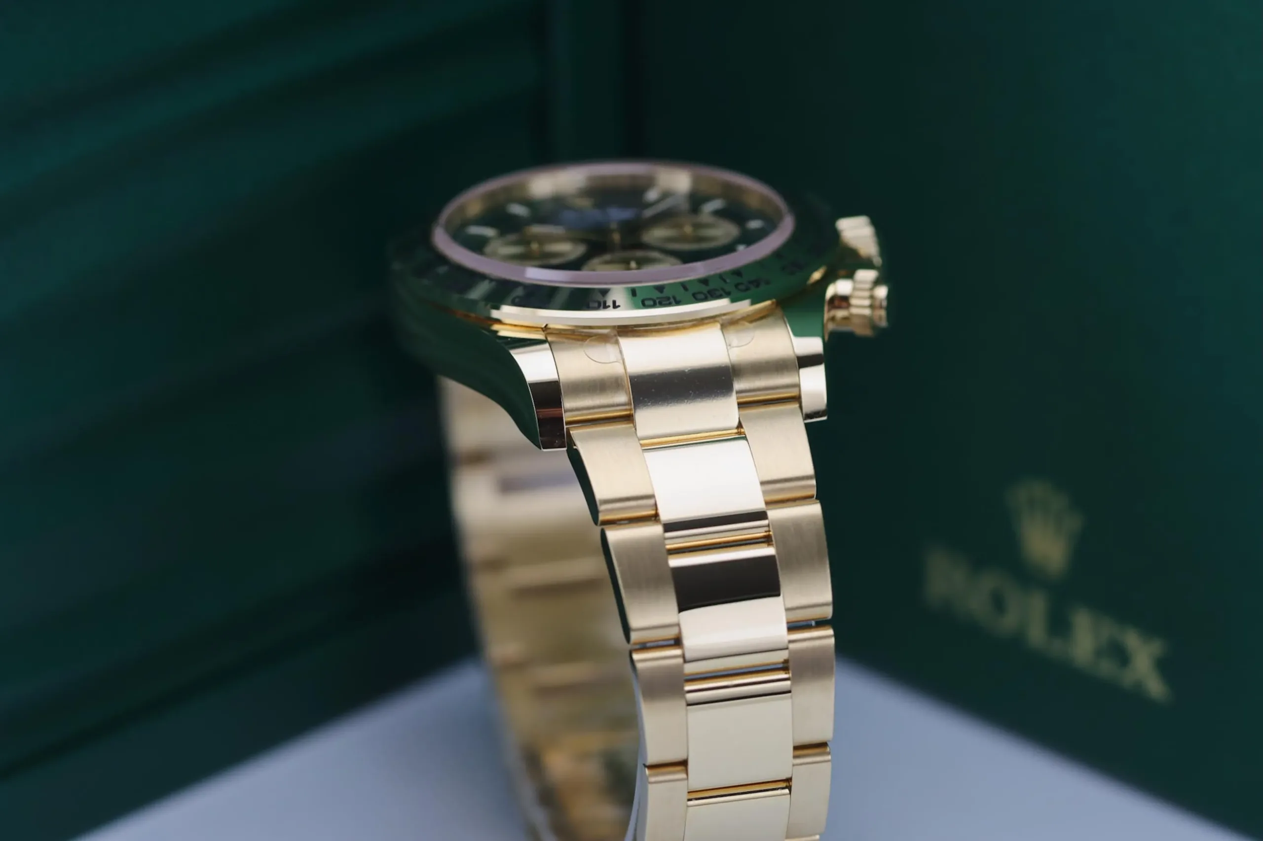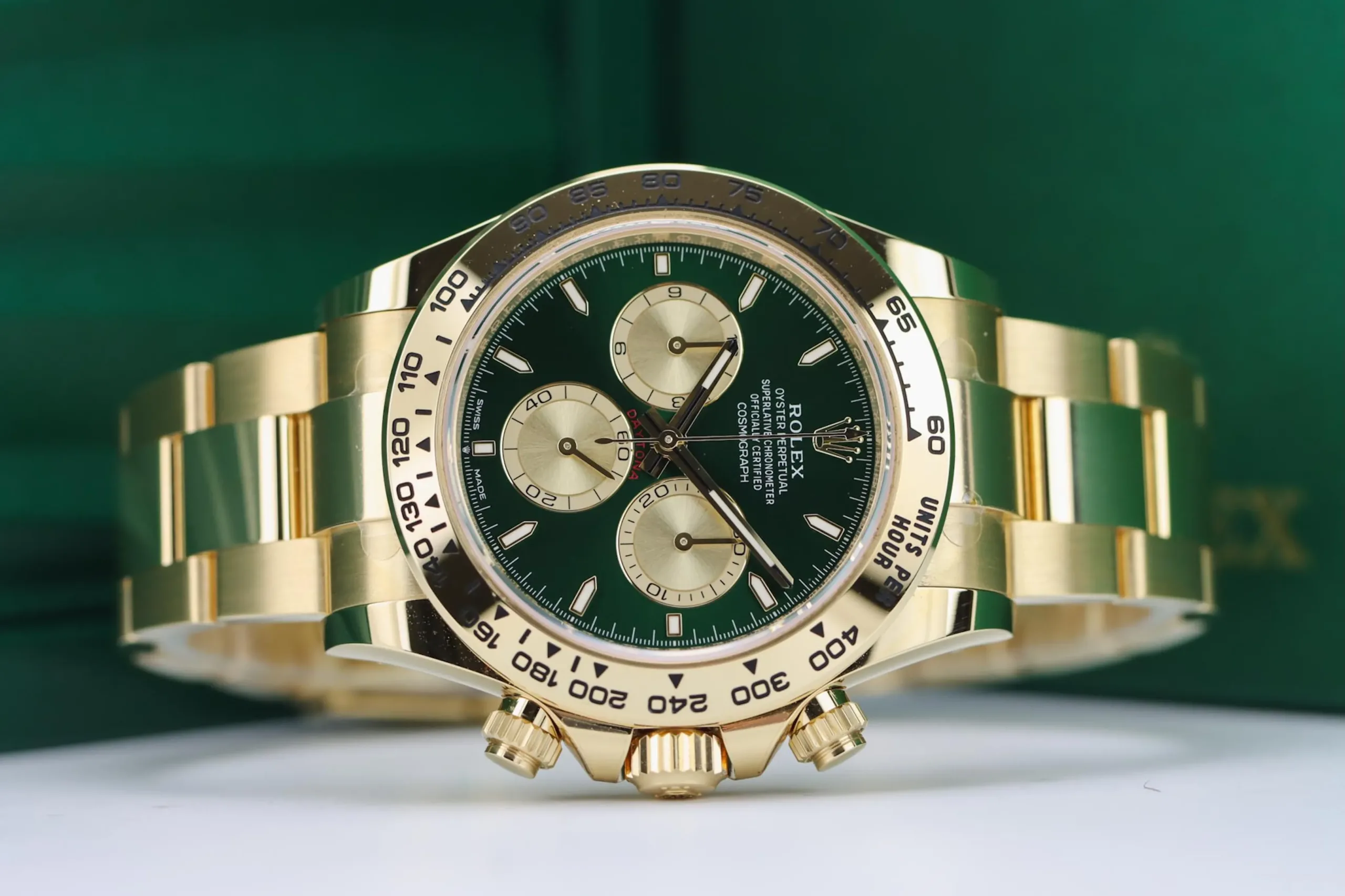 The Rolex Daytona 126508 in yellow gold with the sought-after green “John Mayer” dial is one of the most desirable modern chronographs on the market. This 2025 example remains completely unworn, featuring the striking sunburst green dial paired with a solid 18ct yellow gold case and Oyster bracelet. Known among collectors as the “John Mayer Daytona,” this reference has become a modern icon thanks to its rarity and investment appeal.