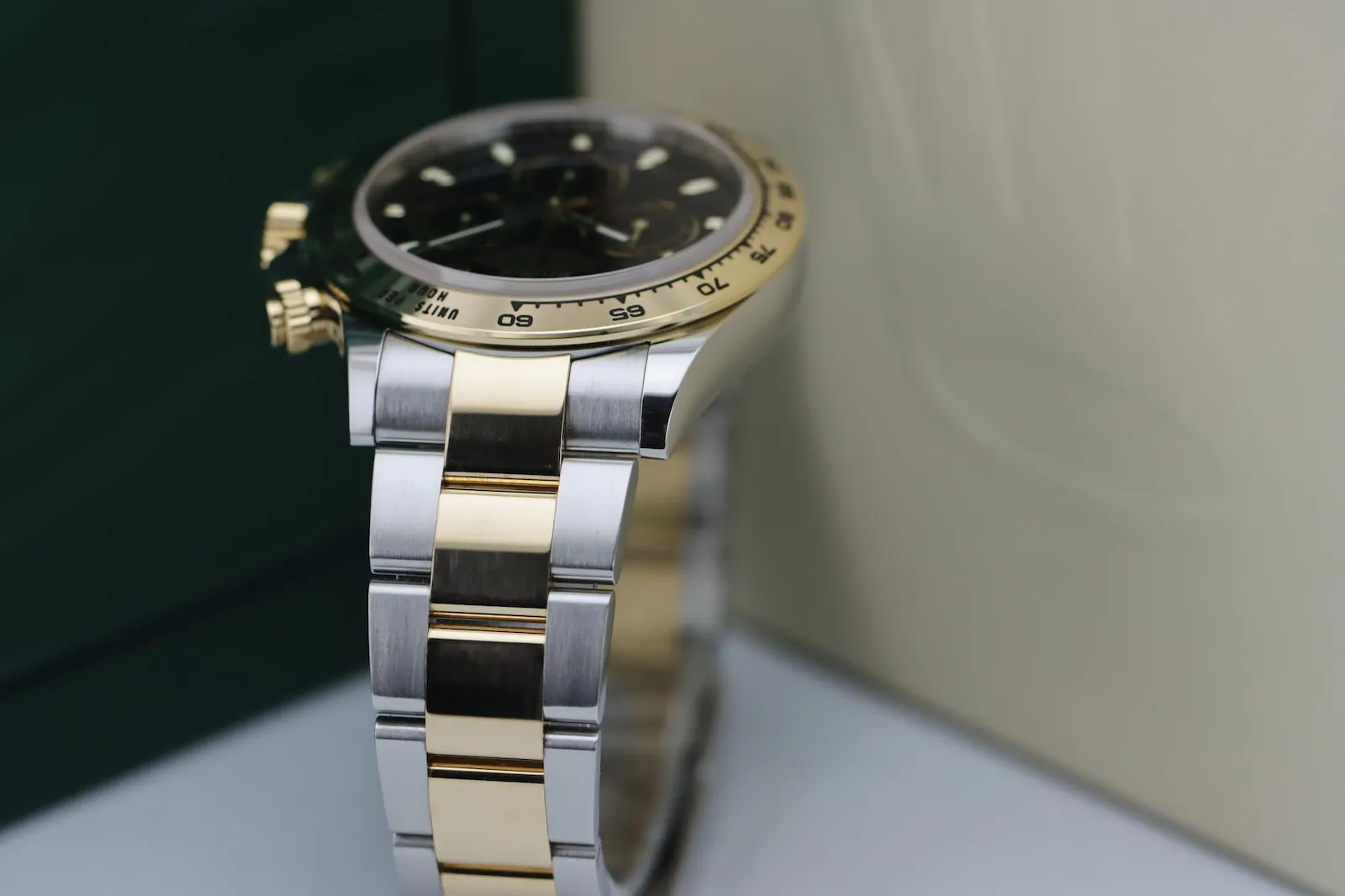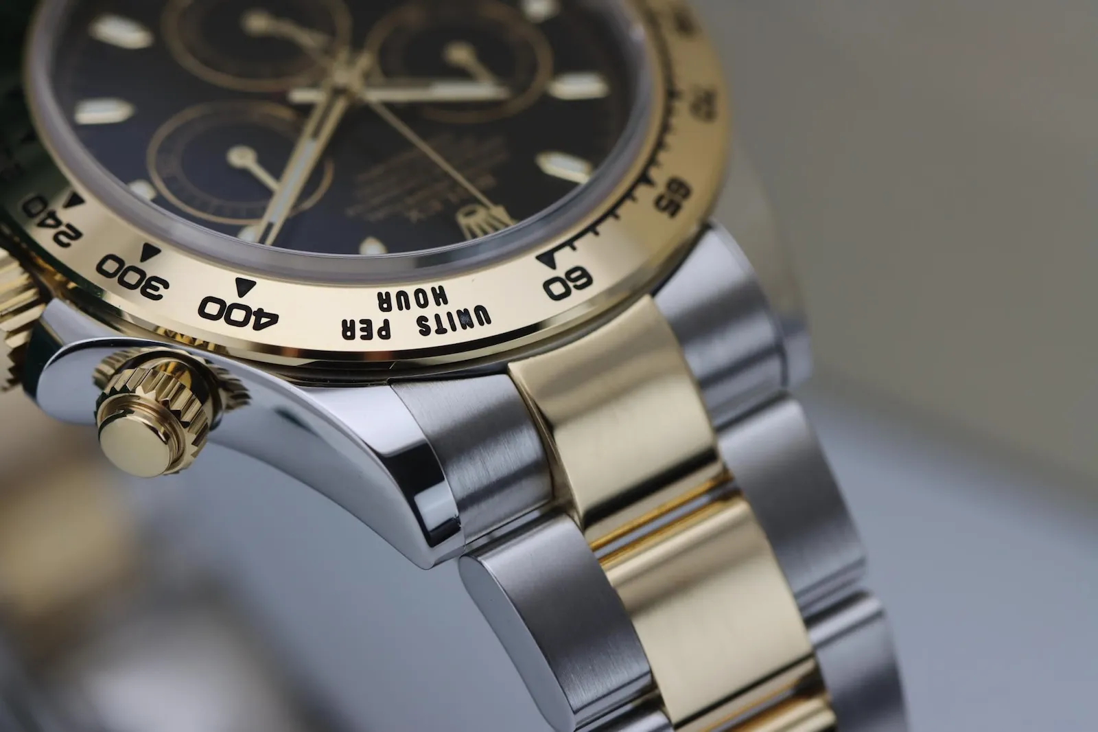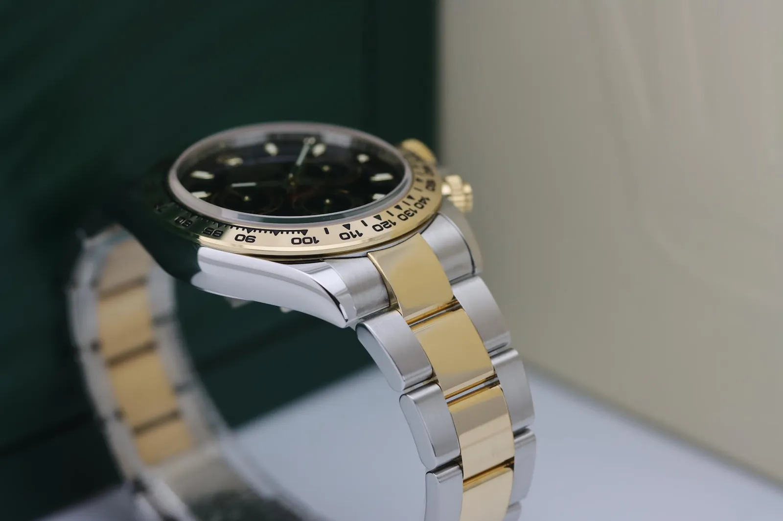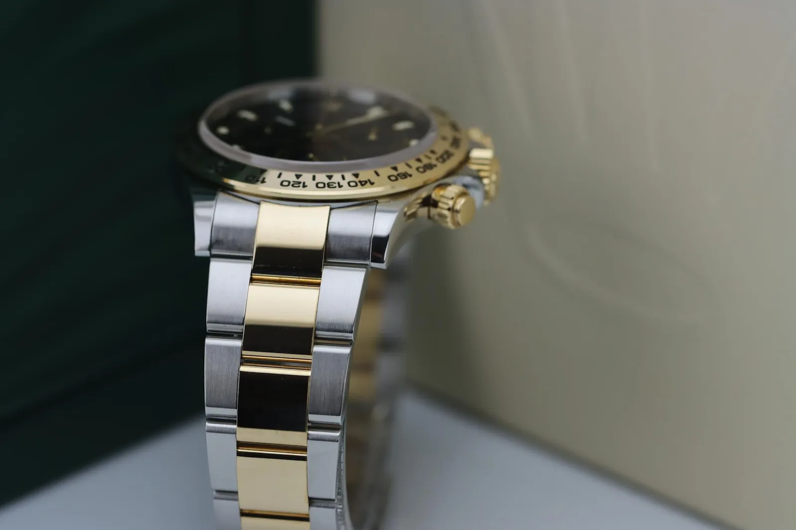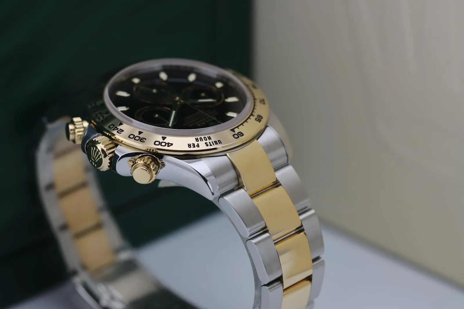 The Rolex Daytona Cosmograph 116503 is a timeless sports chronograph that perfectly blends luxury and performance. Crafted from stainless steel and 18ct yellow gold, this 40mm reference features the elegant black dial with gold sub-dials, offering a striking contrast and signature Daytona aesthetic. Powered by the Rolex calibre 4130 automatic movement, it delivers exceptional precision, reliability, and a 72-hour power reserve.