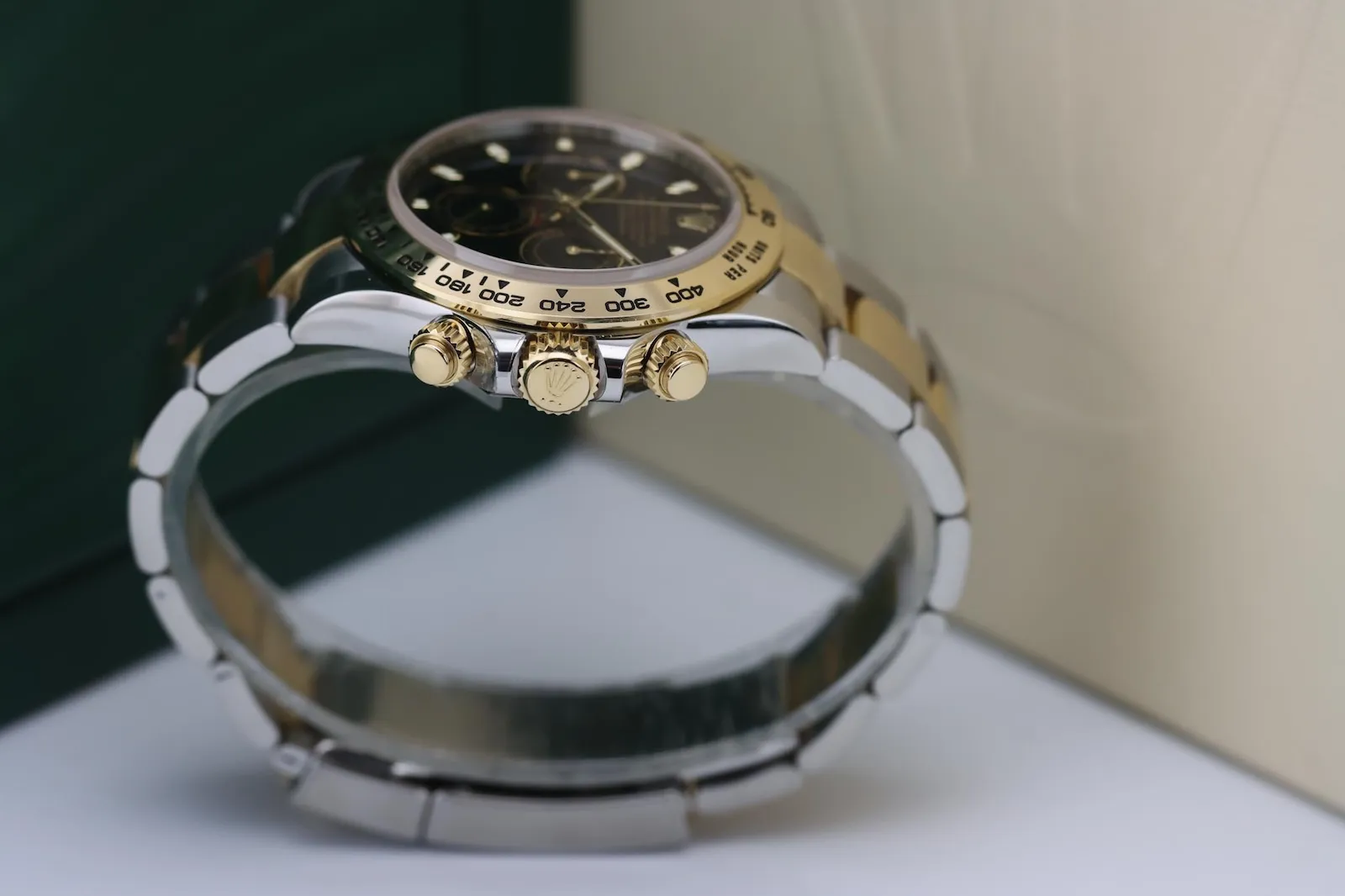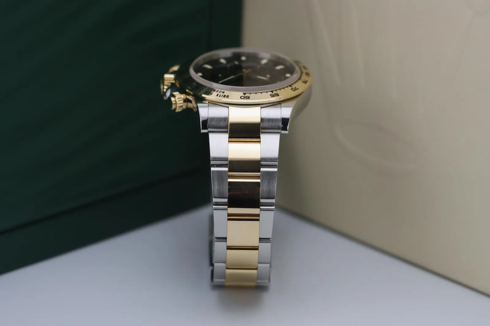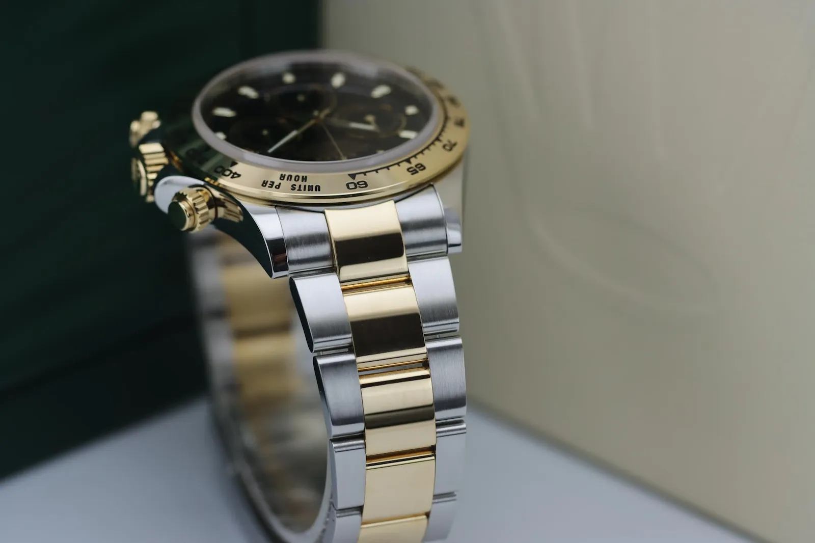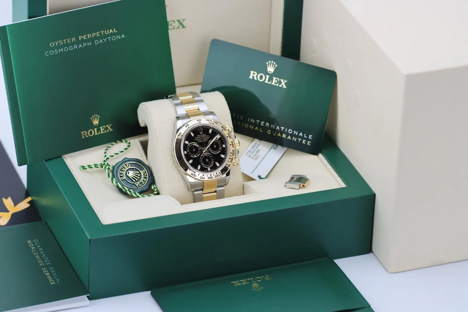 The Rolex Daytona Cosmograph 116503 is a timeless sports chronograph that perfectly blends luxury and performance. Crafted from stainless steel and 18ct yellow gold, this 40mm reference features the elegant black dial with gold sub-dials, offering a striking contrast and signature Daytona aesthetic. Powered by the Rolex calibre 4130 automatic movement, it delivers exceptional precision, reliability, and a 72-hour power reserve.