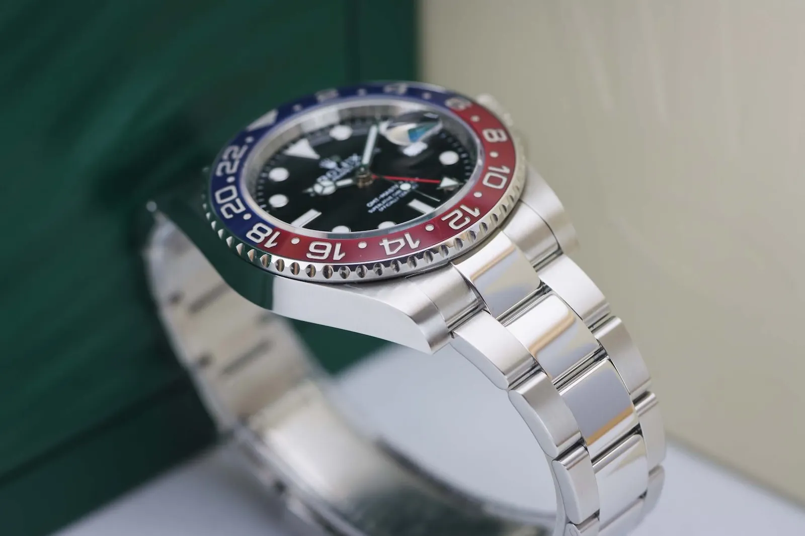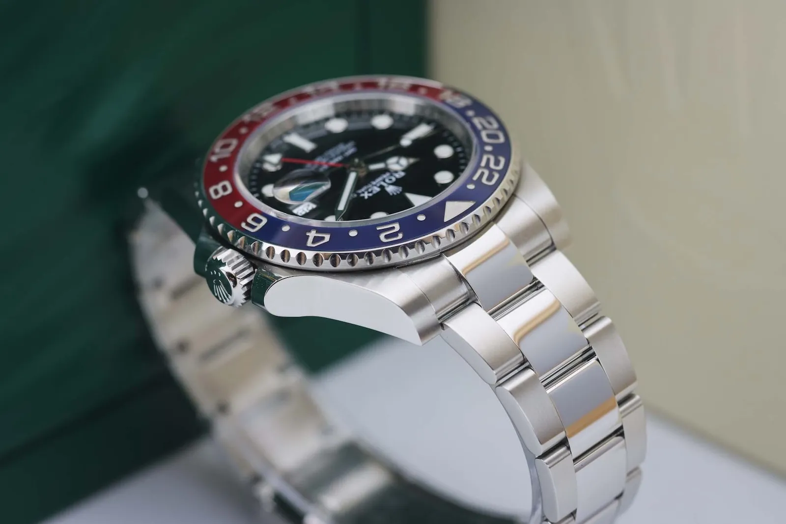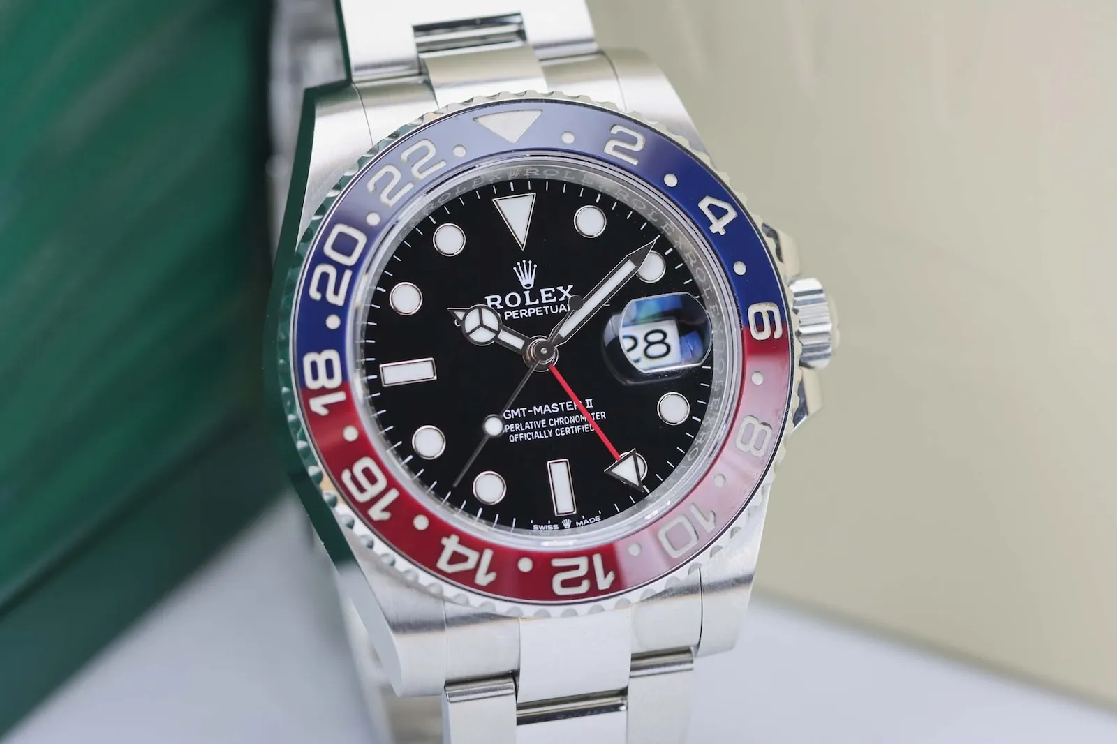 The Rolex GMT-Master II 126710BLRO, nicknamed the “Pepsi,” is one of the most iconic modern sports watches. Featuring the famous red and blue Cerachrom bezel, this reference is paired with the robust 40mm stainless steel Oyster case and Oyster bracelet. Powered by the Rolex calibre 3285 automatic movement with 70-hour power reserve, the GMT complication allows tracking of multiple time zones — making it the ultimate luxury travel watch.
