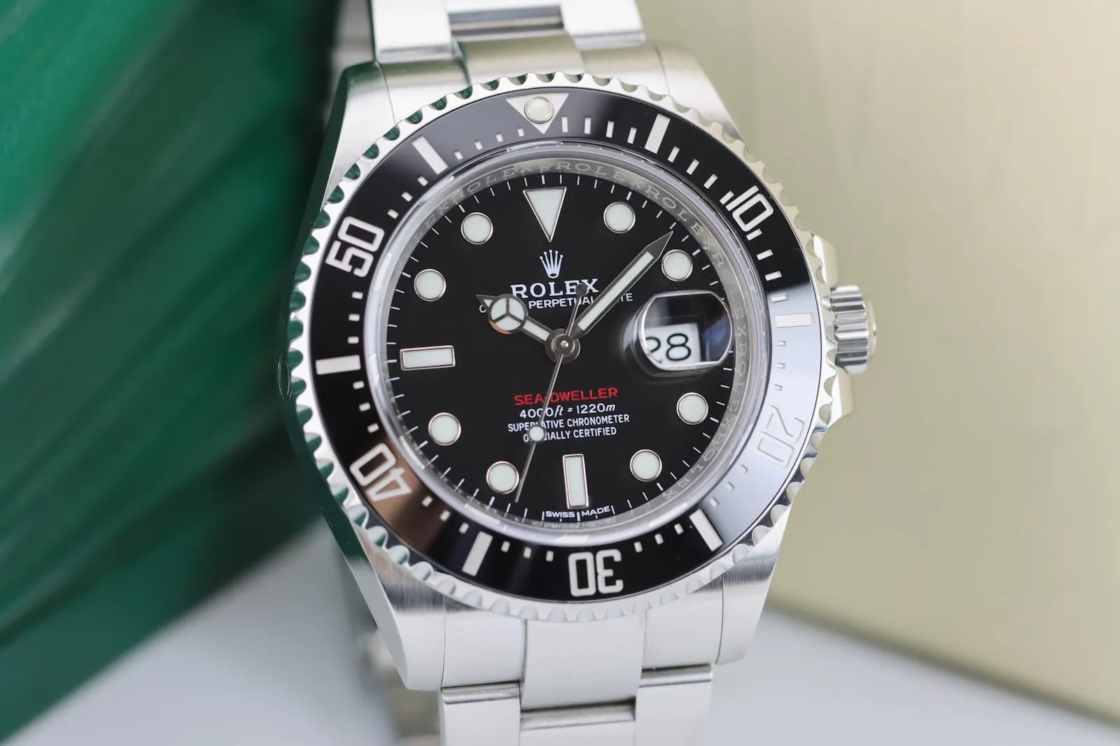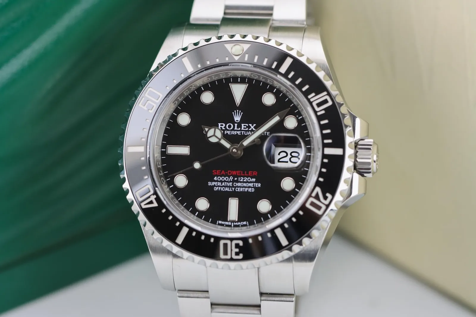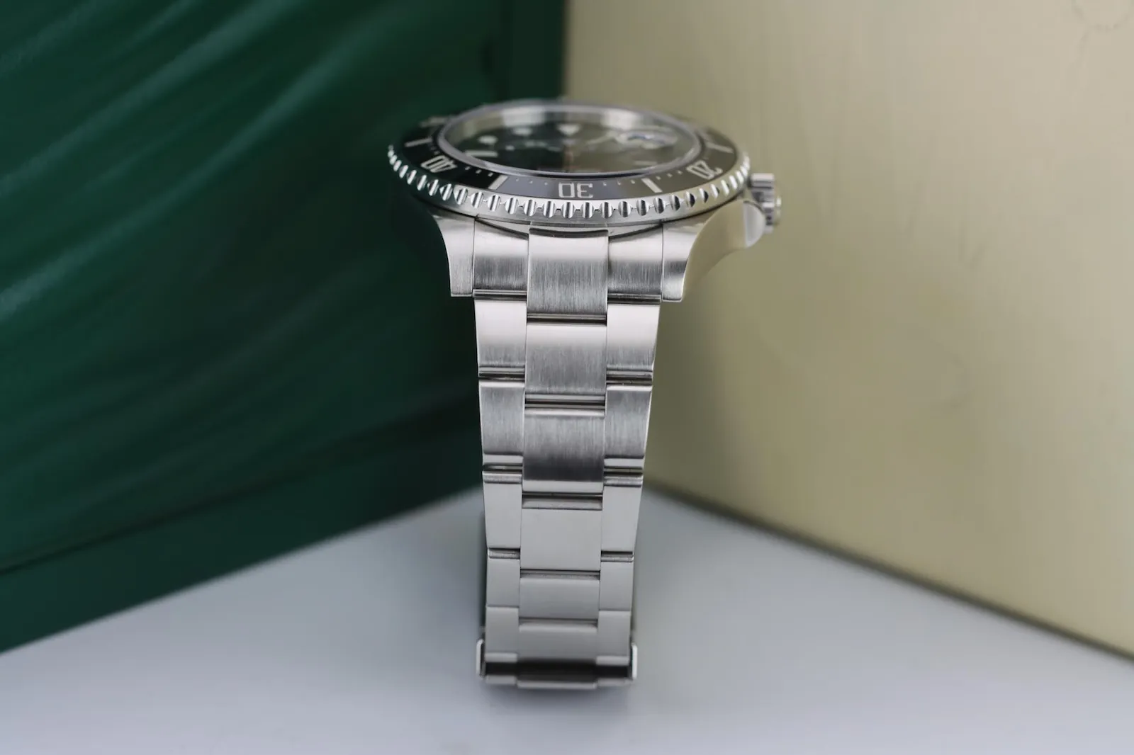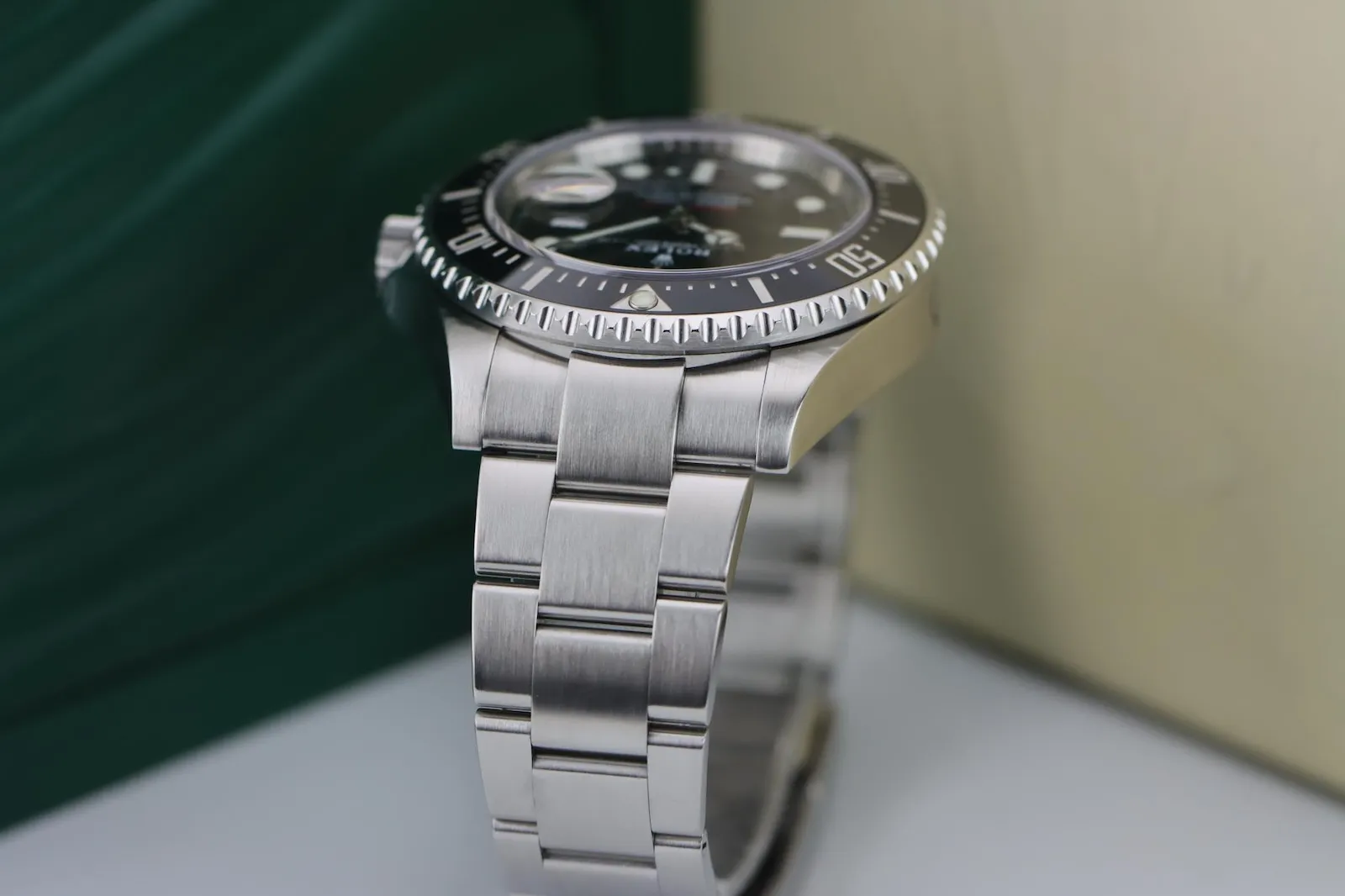 The Rolex Sea-Dweller 126600, introduced to celebrate the model’s 50th anniversary, is one of the most capable professional dive watches in the Rolex lineup. Featuring a robust 43mm stainless steel case, black Cerachrom bezel, and red “Sea-Dweller” text on the dial, it pays tribute to the original design while incorporating modern Rolex innovation. Powered by the calibre 3235 automatic movement, it offers a 70-hour power reserve and water resistance up to 1,220 metres (4,000ft).