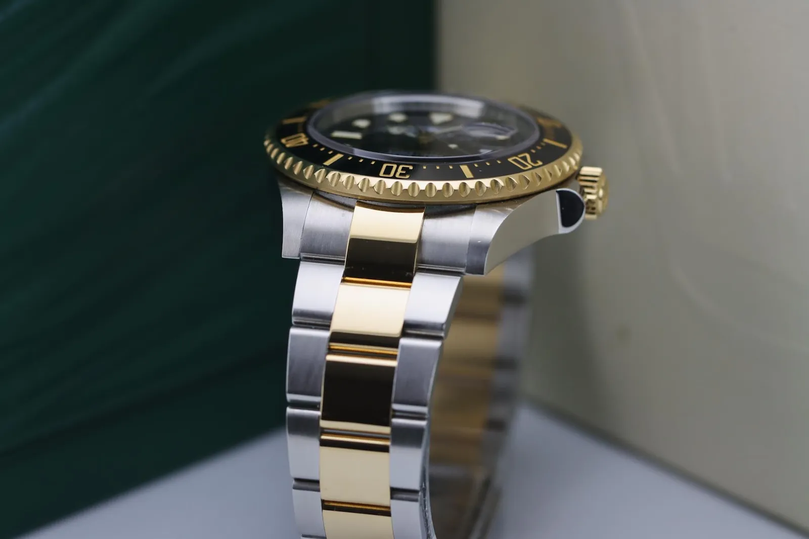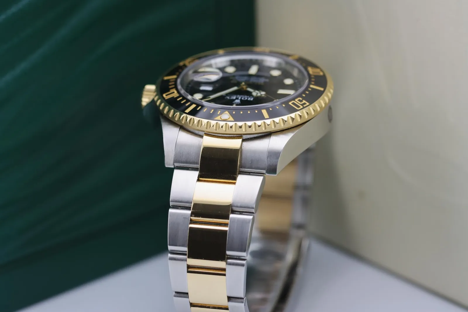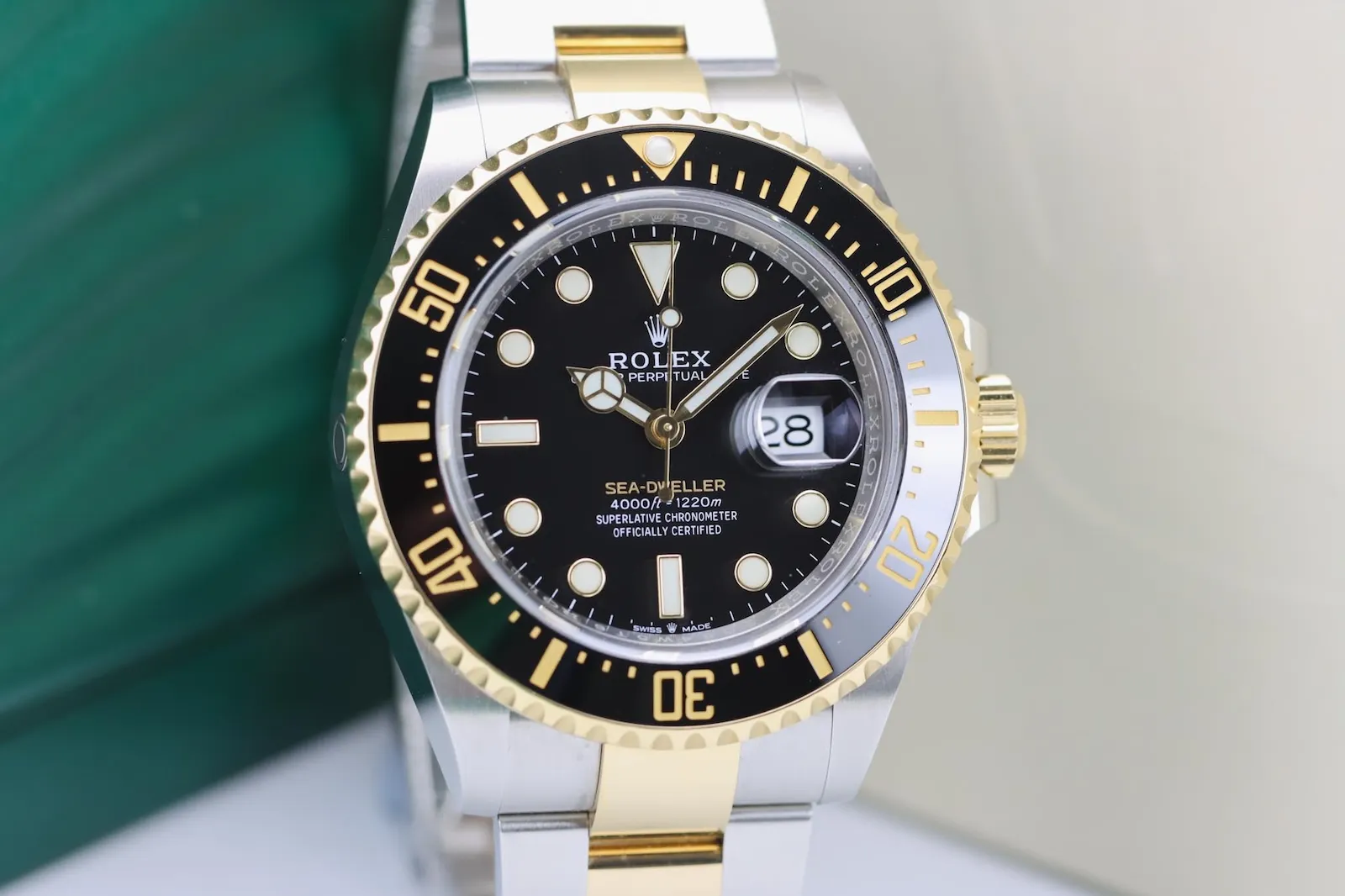 The Rolex Sea-Dweller 126603 is the ultimate tool watch, blending professional diving capability with luxury design. Crafted in robust Oystersteel and 18ct yellow gold, this bi-metal Sea-Dweller offers a commanding 43mm case with a black Cerachrom bezel, designed for durability and underwater legibility.