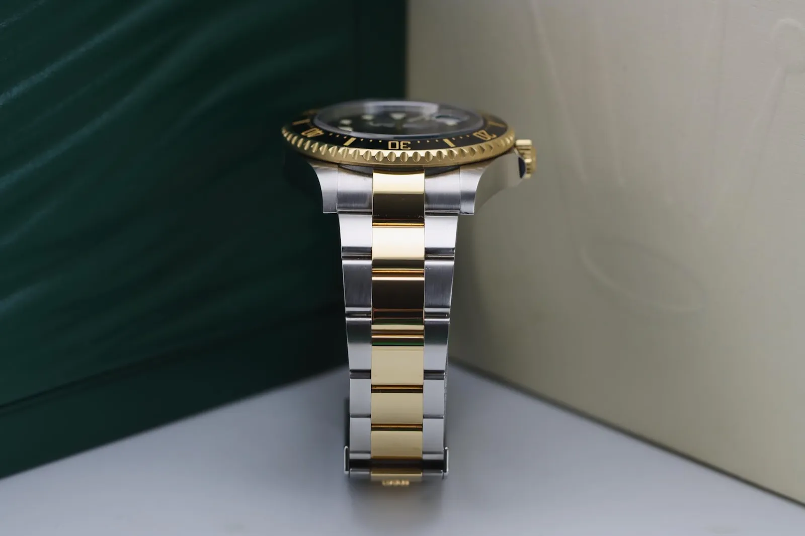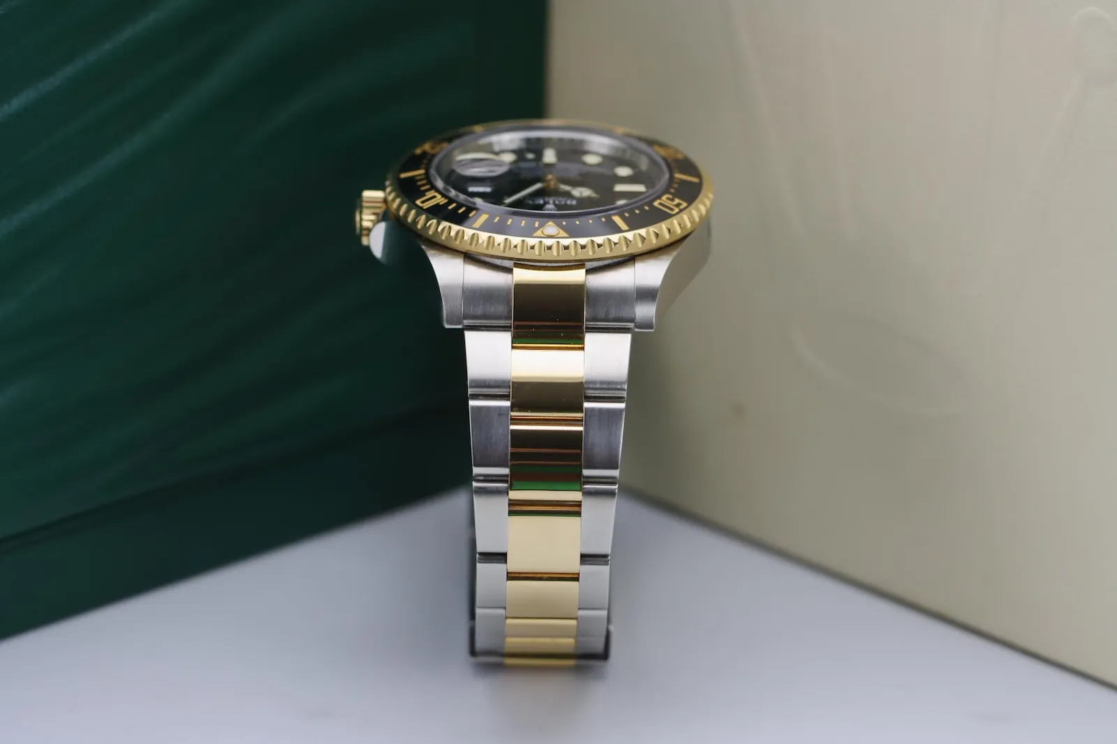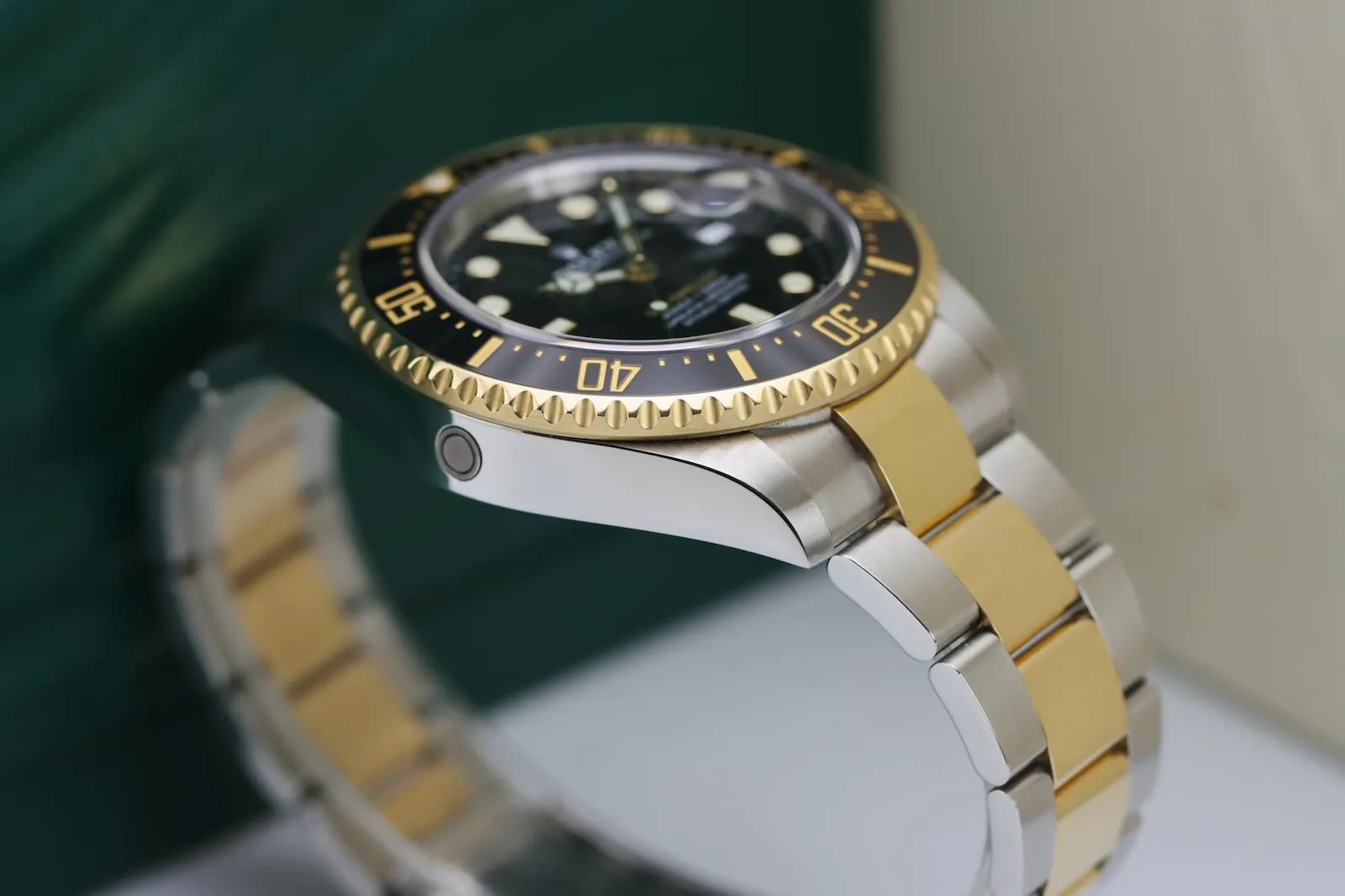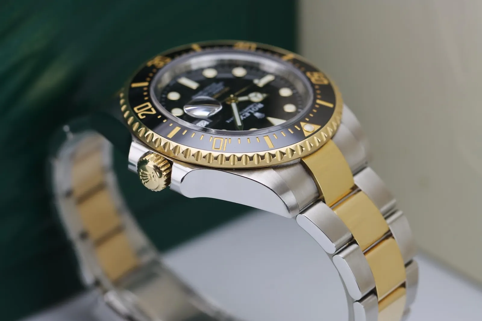 The Rolex Sea-Dweller 126603 is the ultimate tool watch, blending professional diving capability with luxury design. Crafted in robust Oystersteel and 18ct yellow gold, this bi-metal Sea-Dweller offers a commanding 43mm case with a black Cerachrom bezel, designed for durability and underwater legibility.
