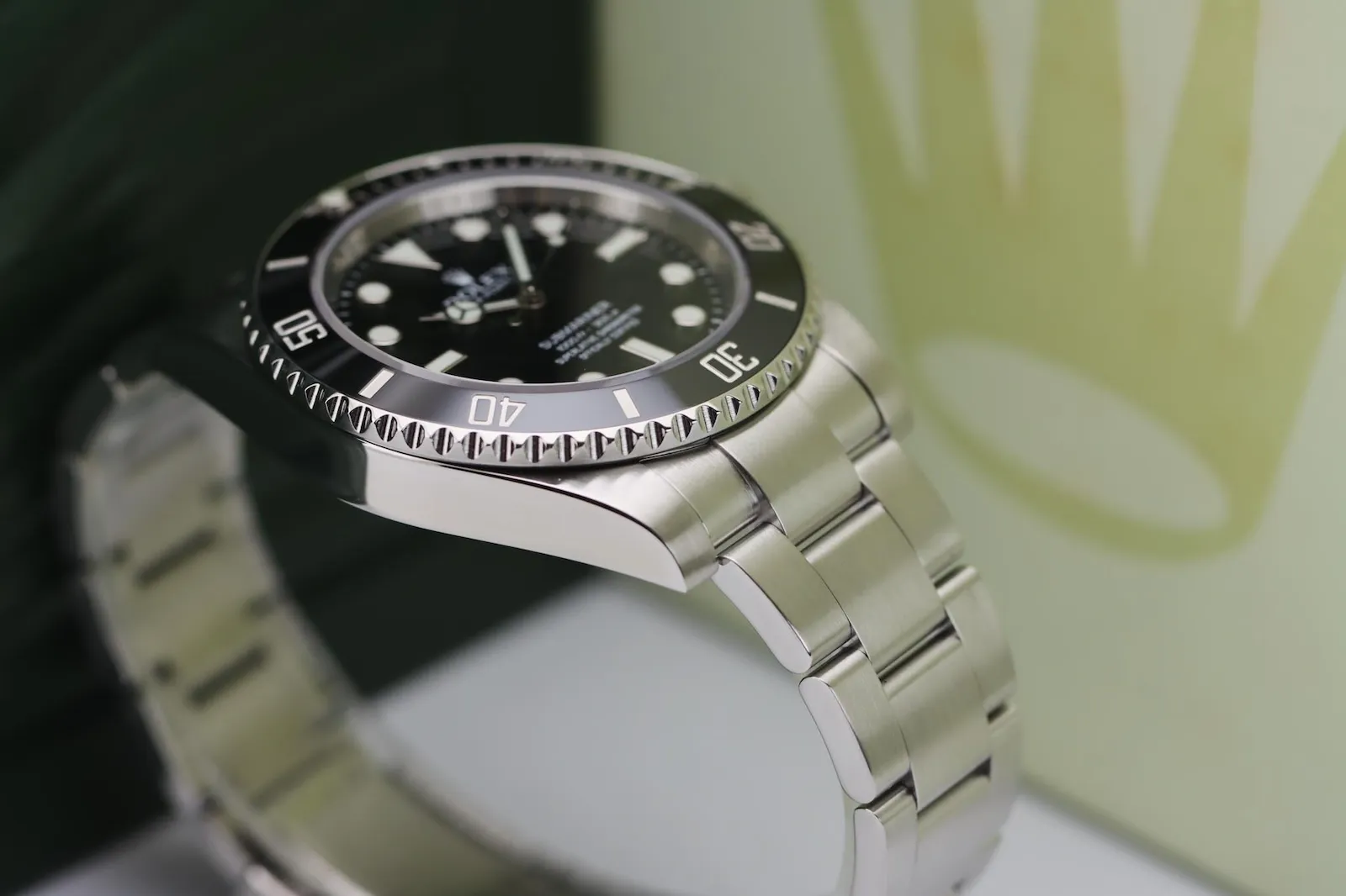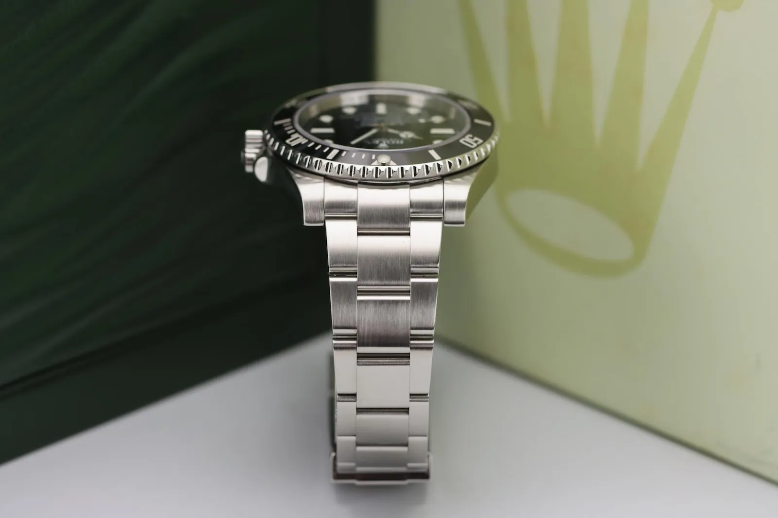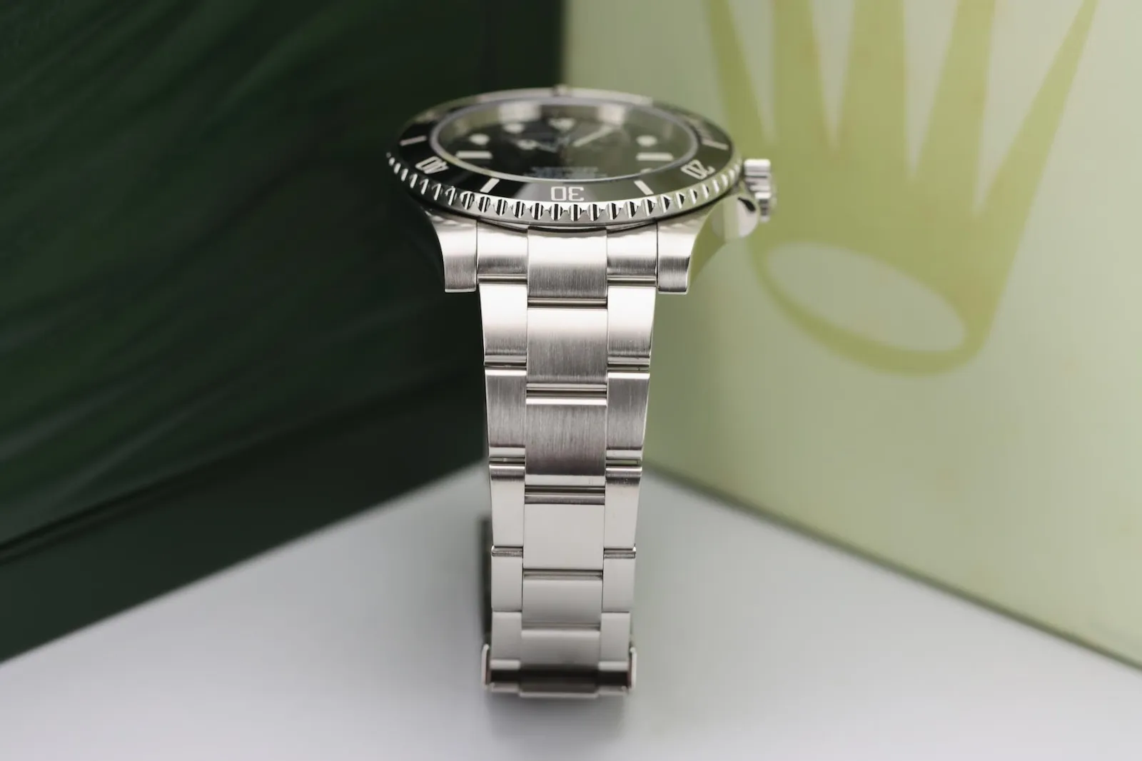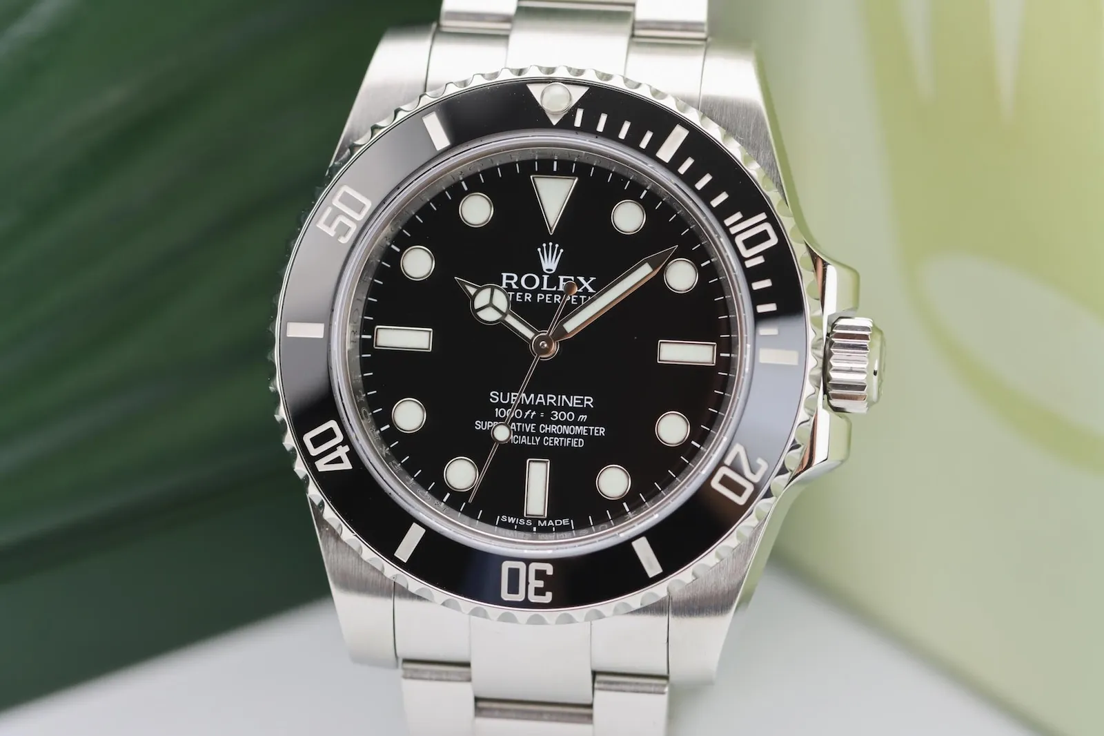 The Rolex Submariner 114060 Non-Date remains one of the most admired and purest expressions of the Submariner line. Featuring a 40mm stainless steel Oyster case, black Cerachrom bezel, and classic black dial with Chromalight luminous markers, this reference is powered by the Rolex calibre 3130 — offering exceptional precision and 300m water resistance. Without a date window, it delivers perfect dial symmetry and timeless minimalism.