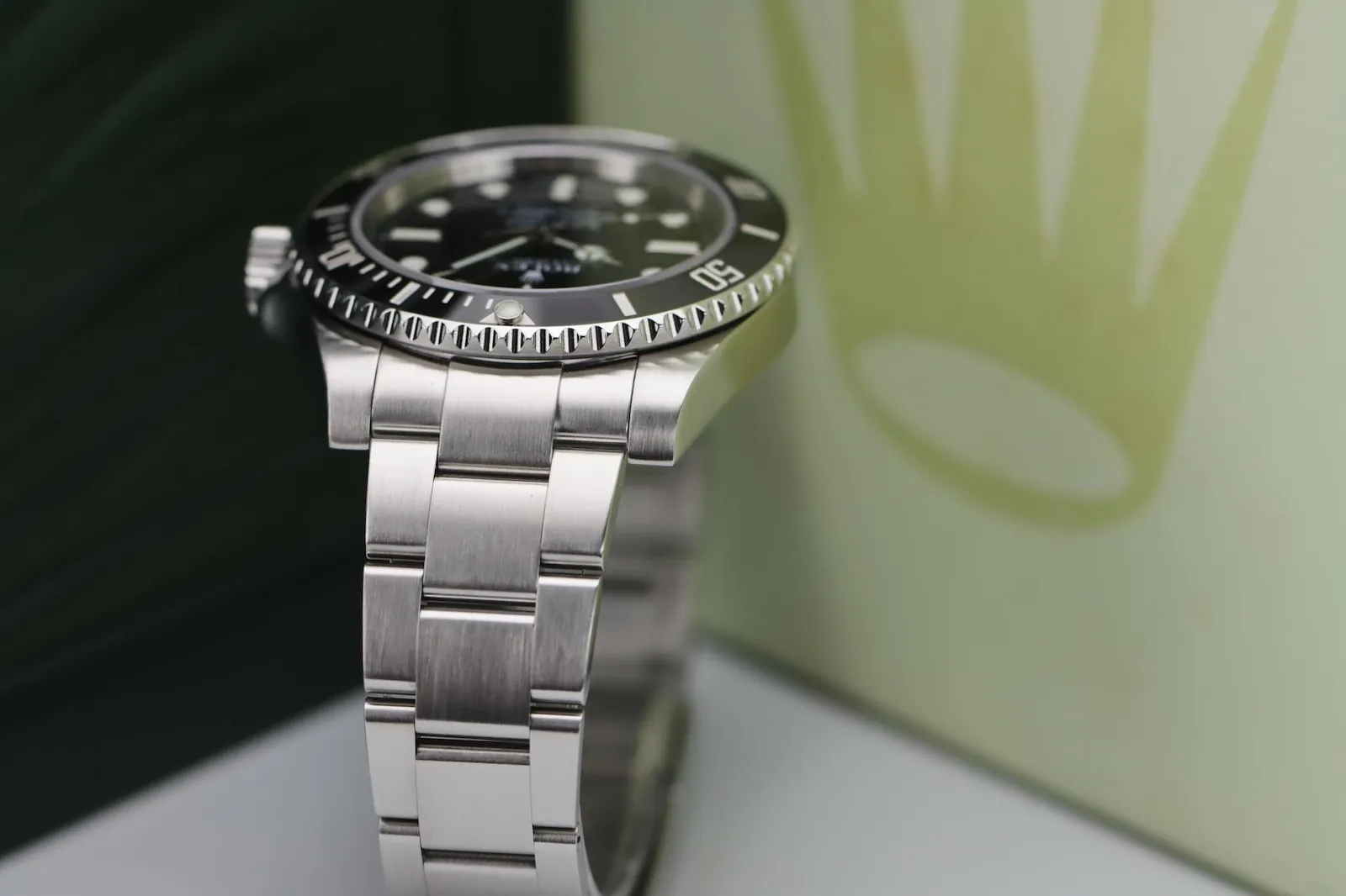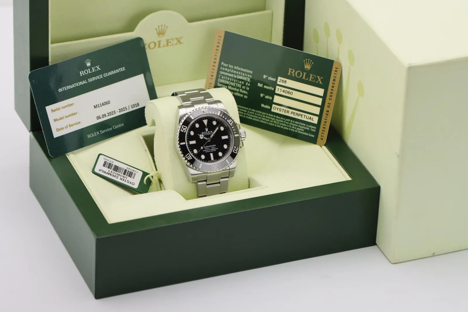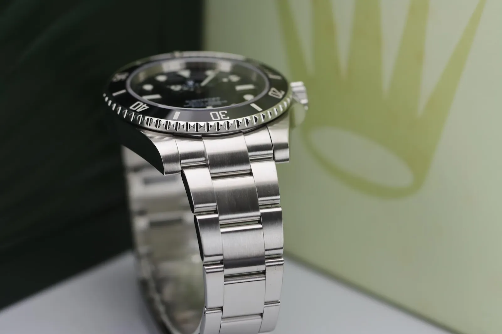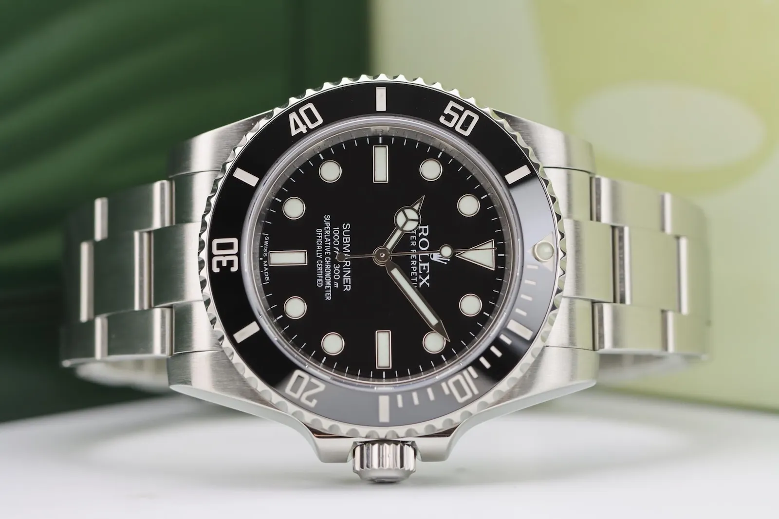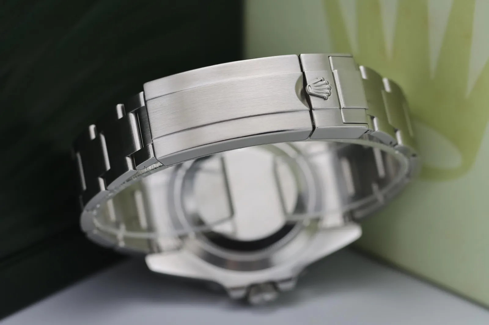 The Rolex Submariner 114060 Non-Date remains one of the most admired and purest expressions of the Submariner line. Featuring a 40mm stainless steel Oyster case, black Cerachrom bezel, and classic black dial with Chromalight luminous markers, this reference is powered by the Rolex calibre 3130 — offering exceptional precision and 300m water resistance. Without a date window, it delivers perfect dial symmetry and timeless minimalism.