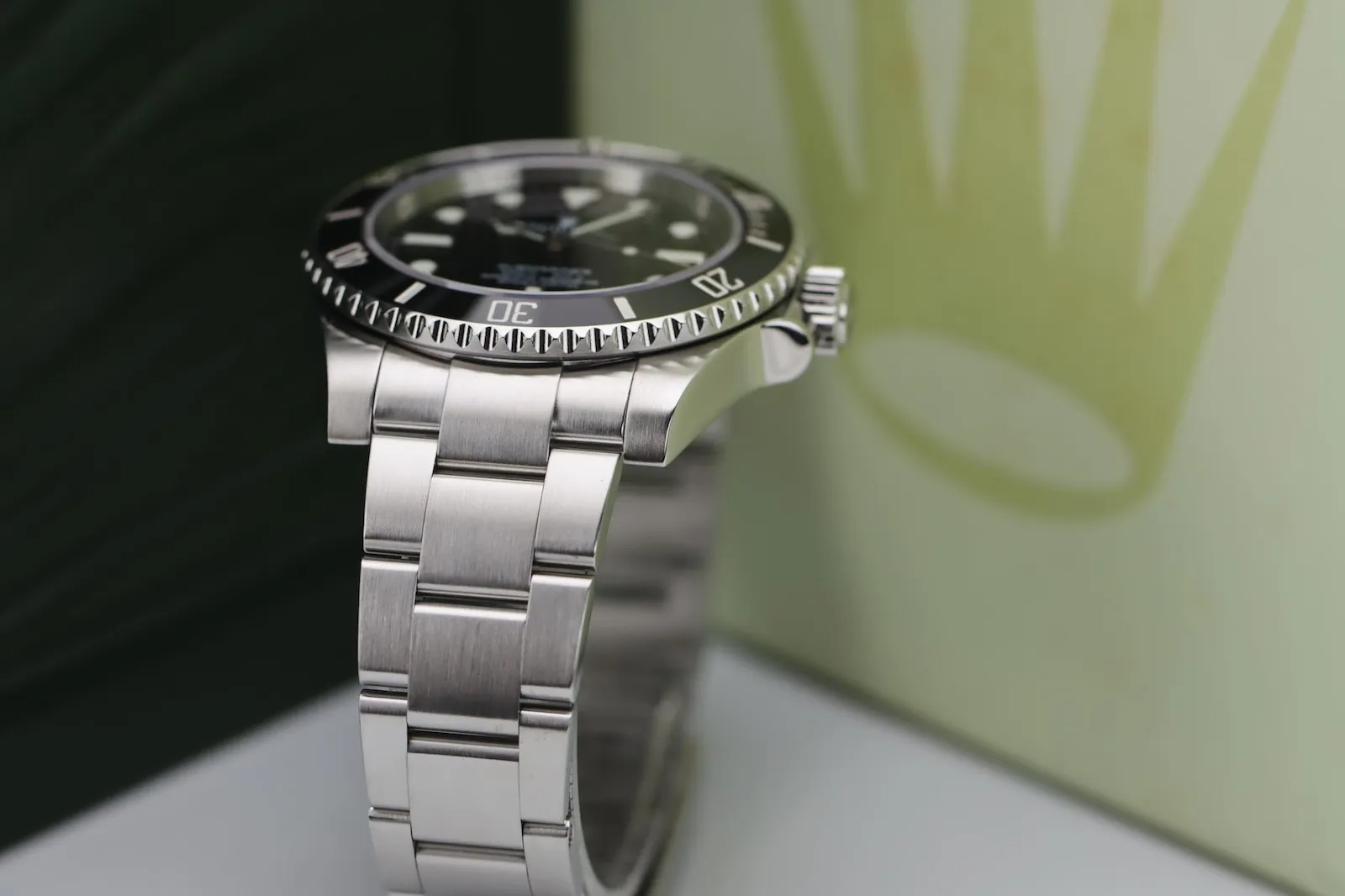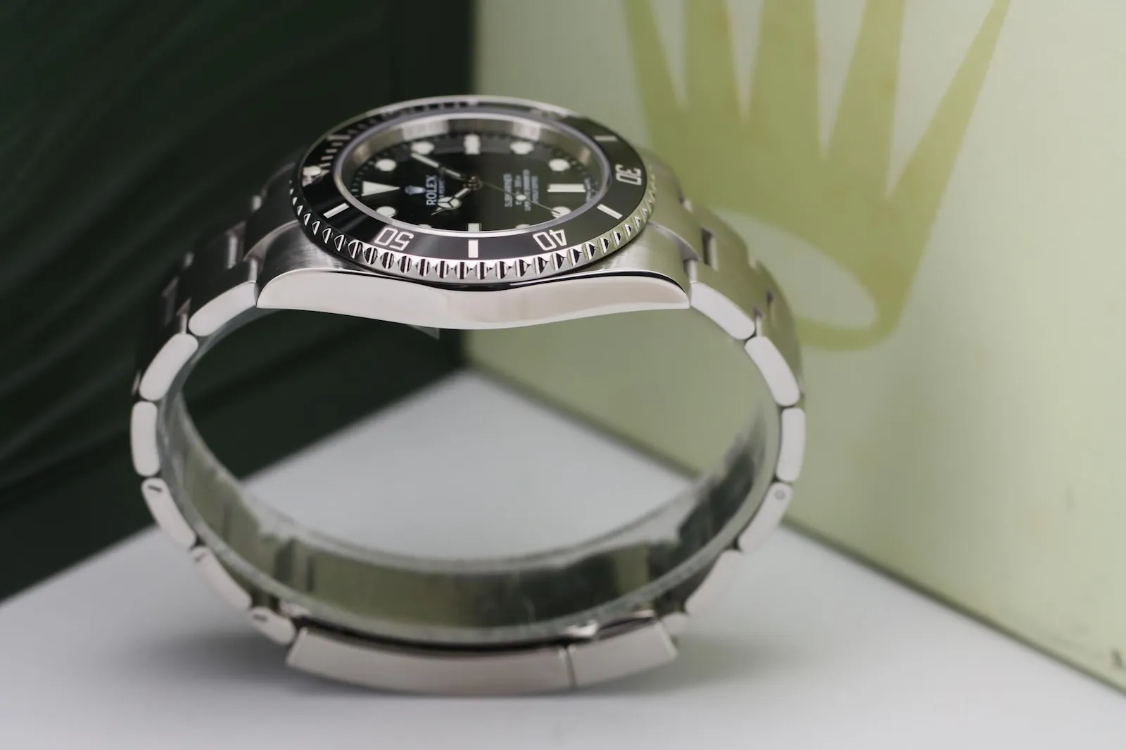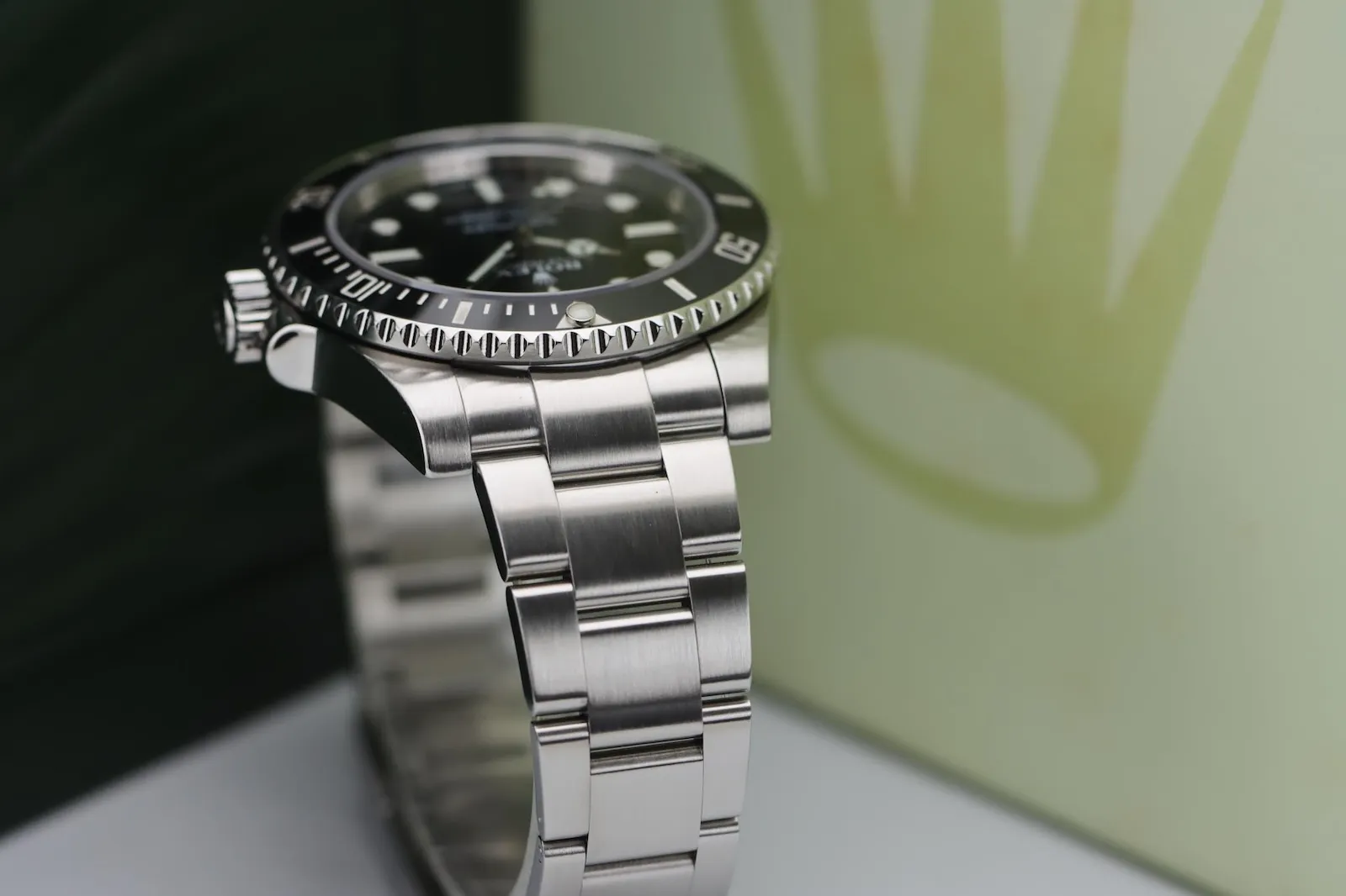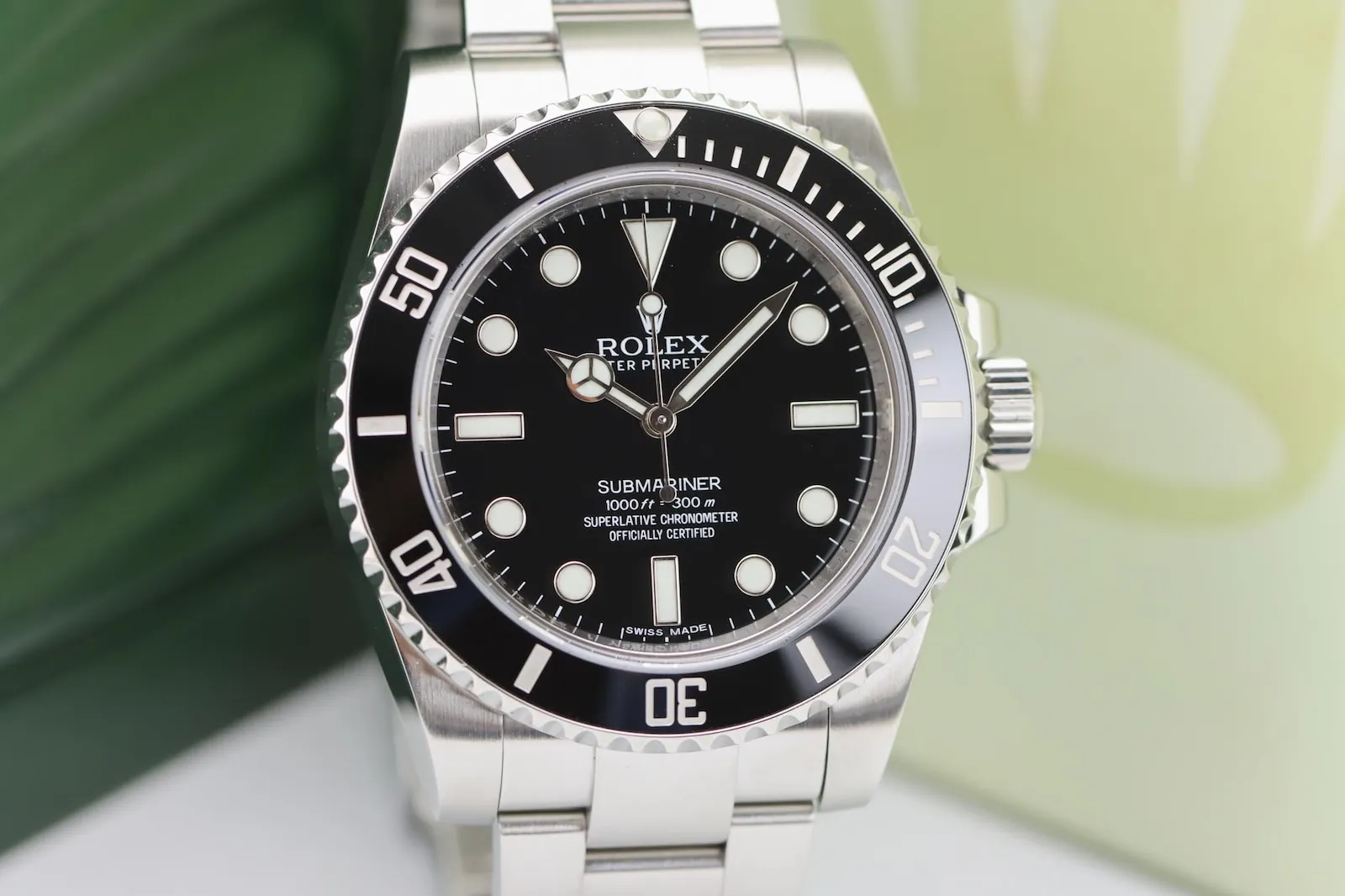 The Rolex Submariner 114060 Non-Date remains one of the most admired and purest expressions of the Submariner line. Featuring a 40mm stainless steel Oyster case, black Cerachrom bezel, and classic black dial with Chromalight luminous markers, this reference is powered by the Rolex calibre 3130 — offering exceptional precision and 300m water resistance. Without a date window, it delivers perfect dial symmetry and timeless minimalism.
