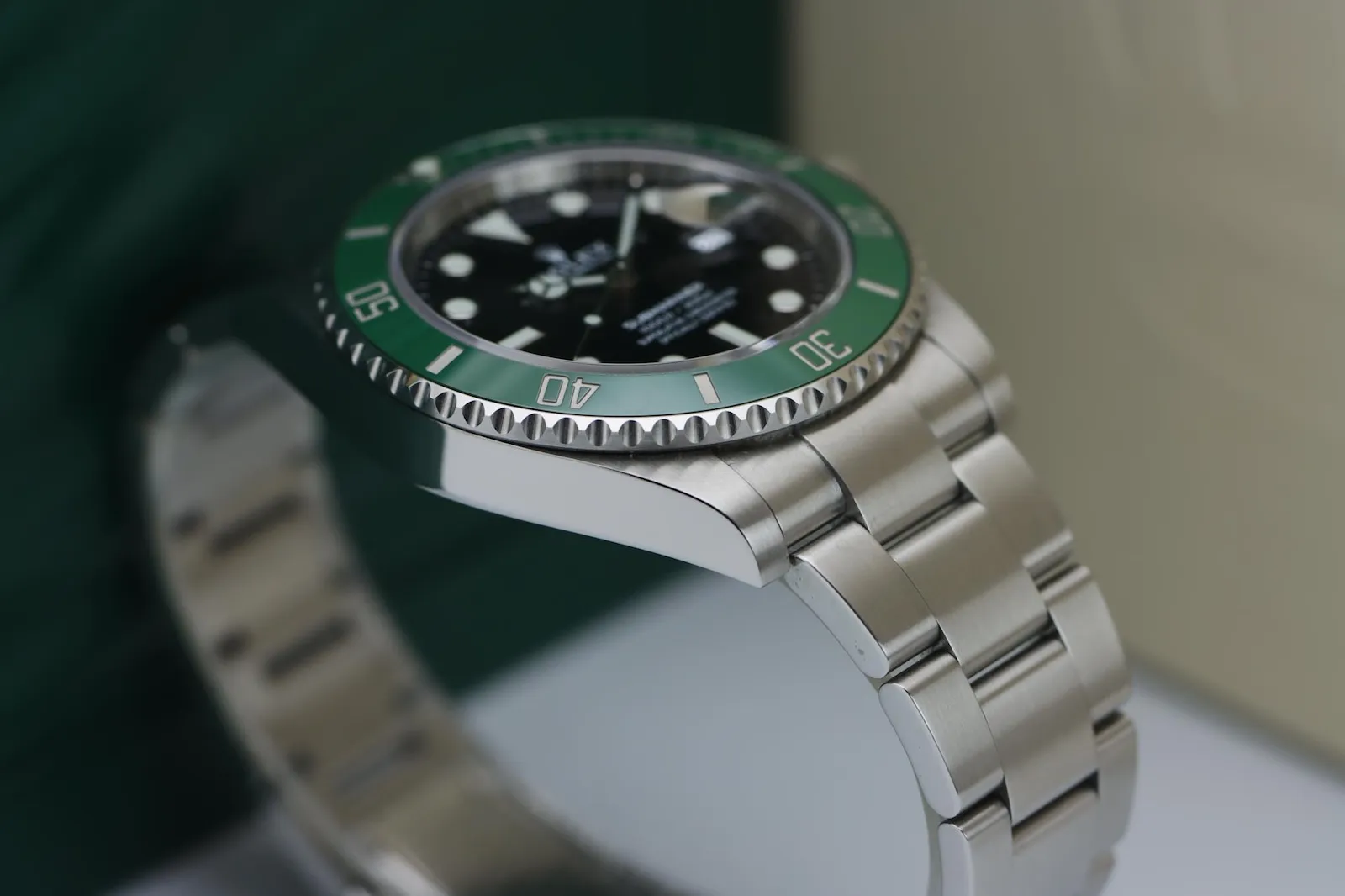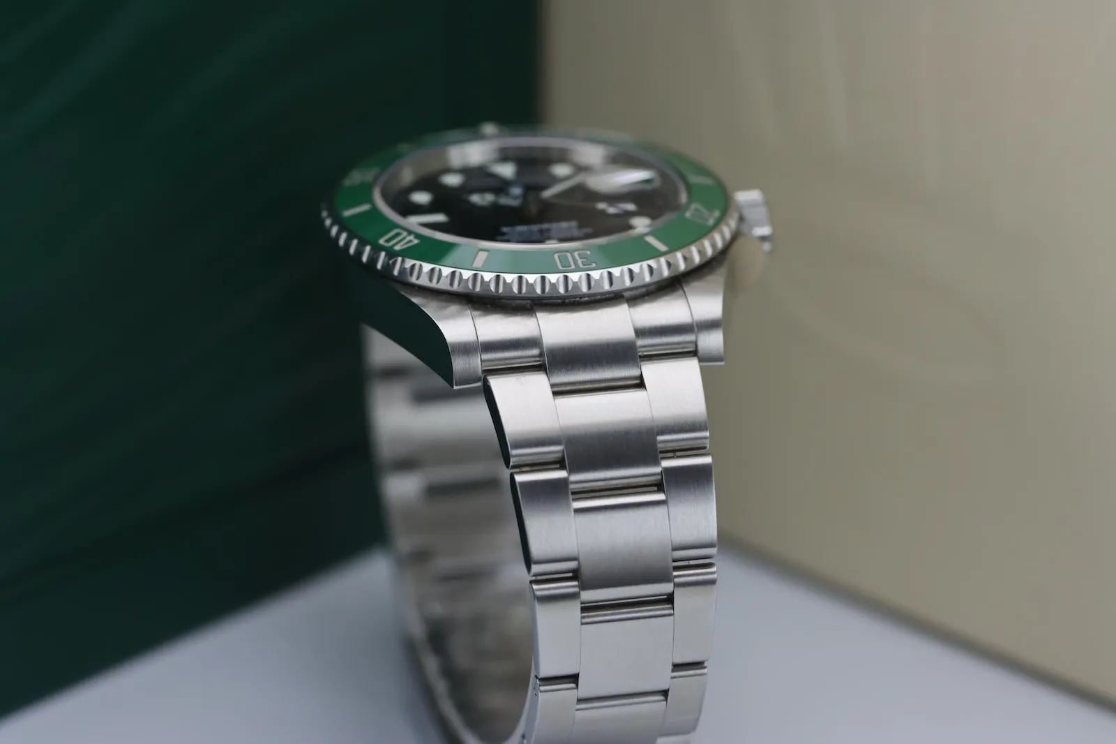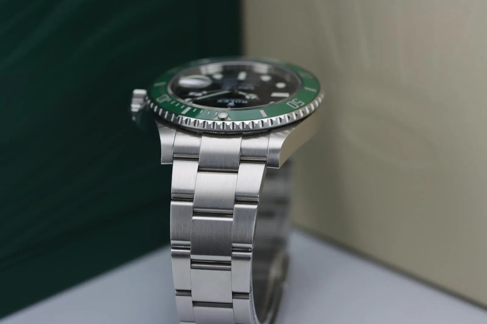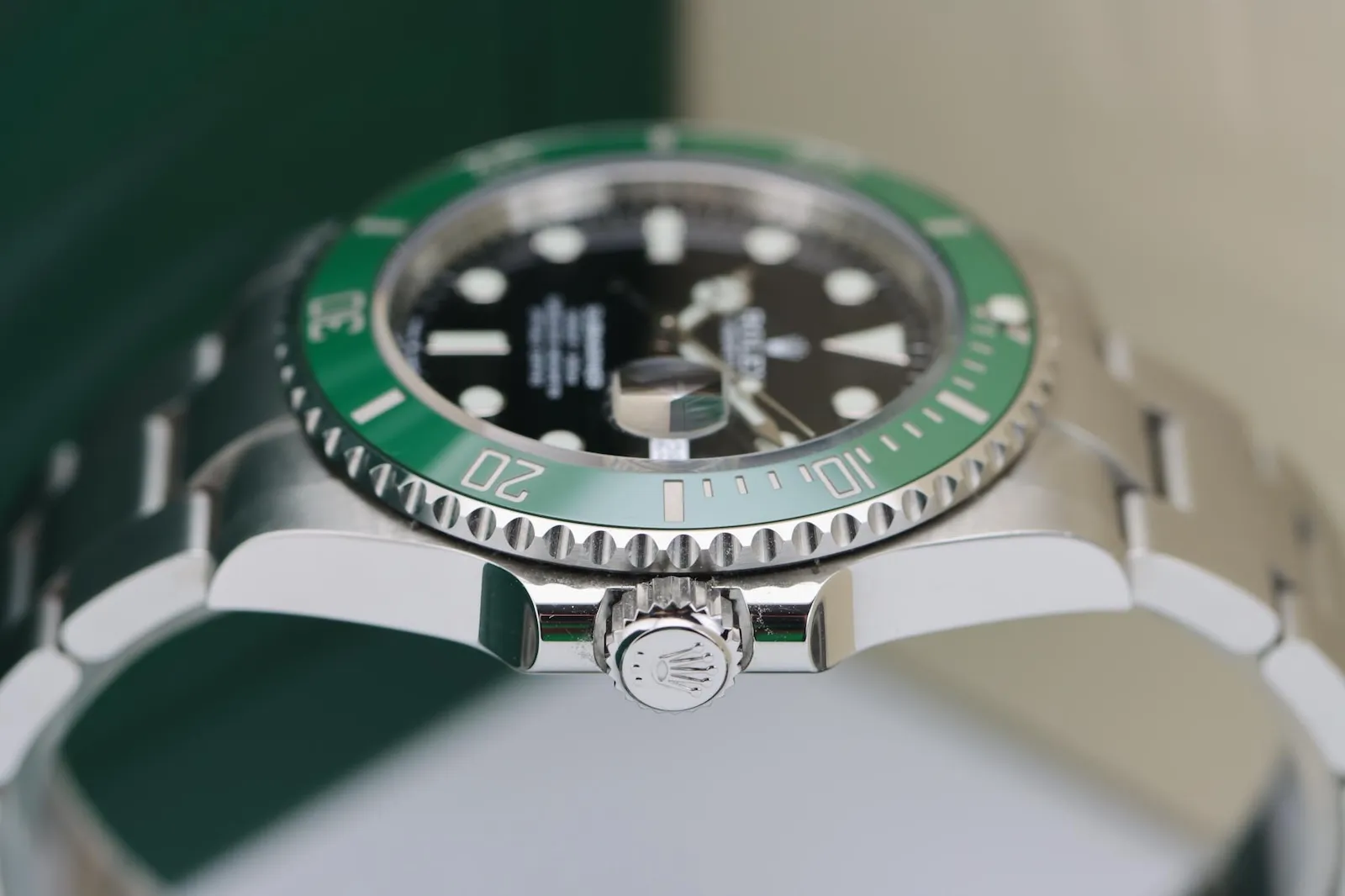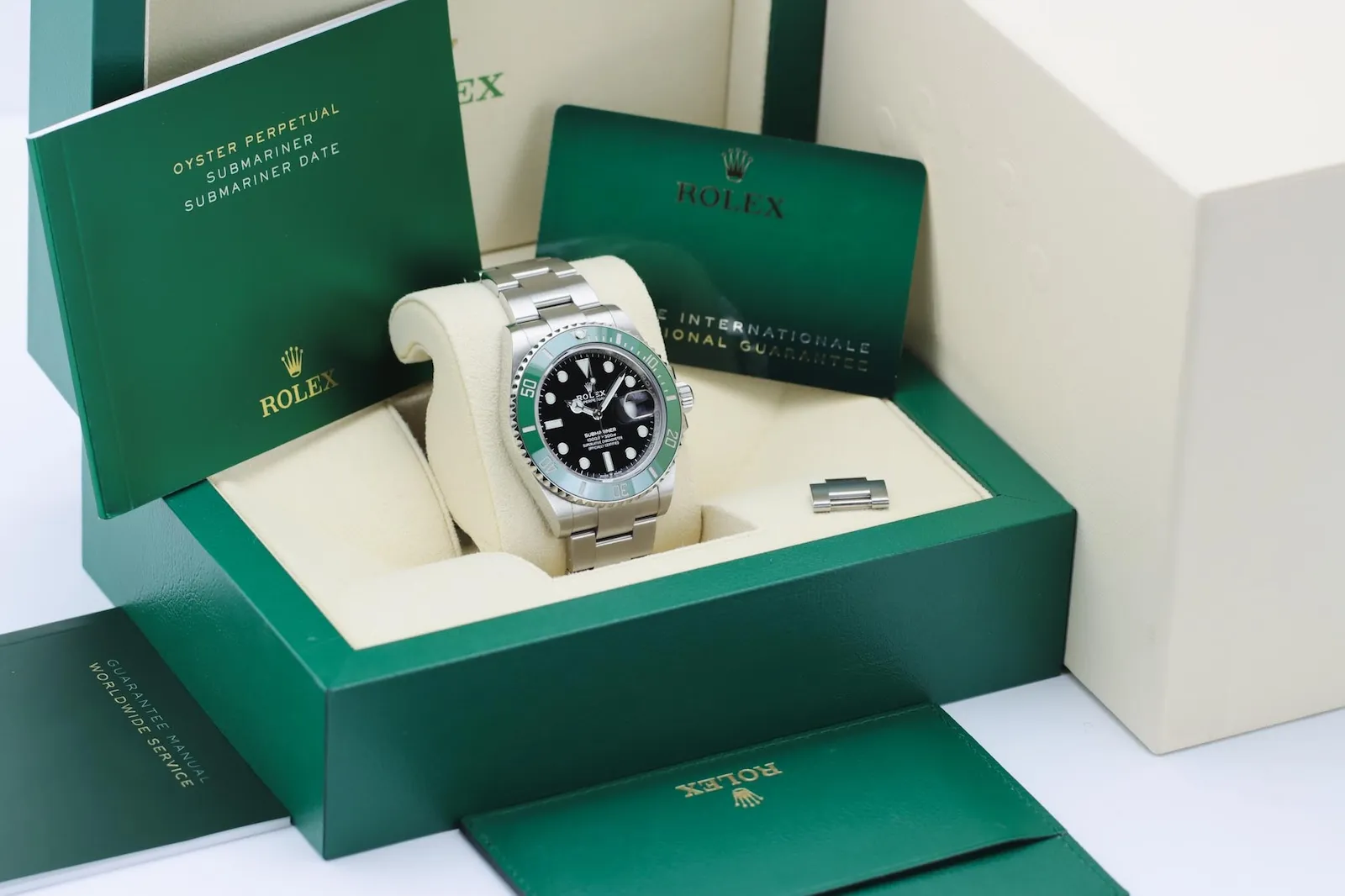 The Rolex Submariner Date 126610LV, nicknamed the “Starbucks,” is one of the most coveted modern Submariners. Featuring a striking black dial and green Cerachrom bezel insert, it pays homage to the legendary “Kermit” while bringing a refreshed 41mm Oystersteel case and updated proportions.